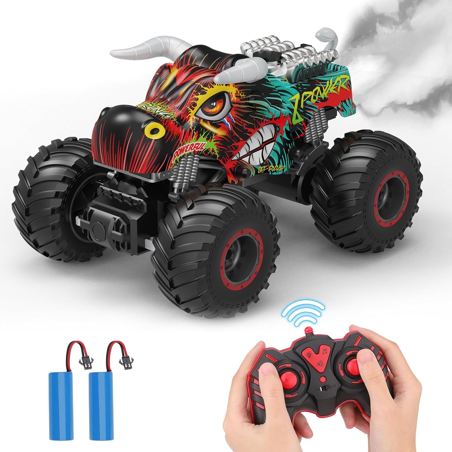 PREBOX Ferngesteuerter Monstertruck für Jungen 8-12 – RC-Bullauto-Spielzeug für Kinder im Alter von 4–7 Jahren, Geburtstagsgeschenke für Jungen mit Musik und Lichtern