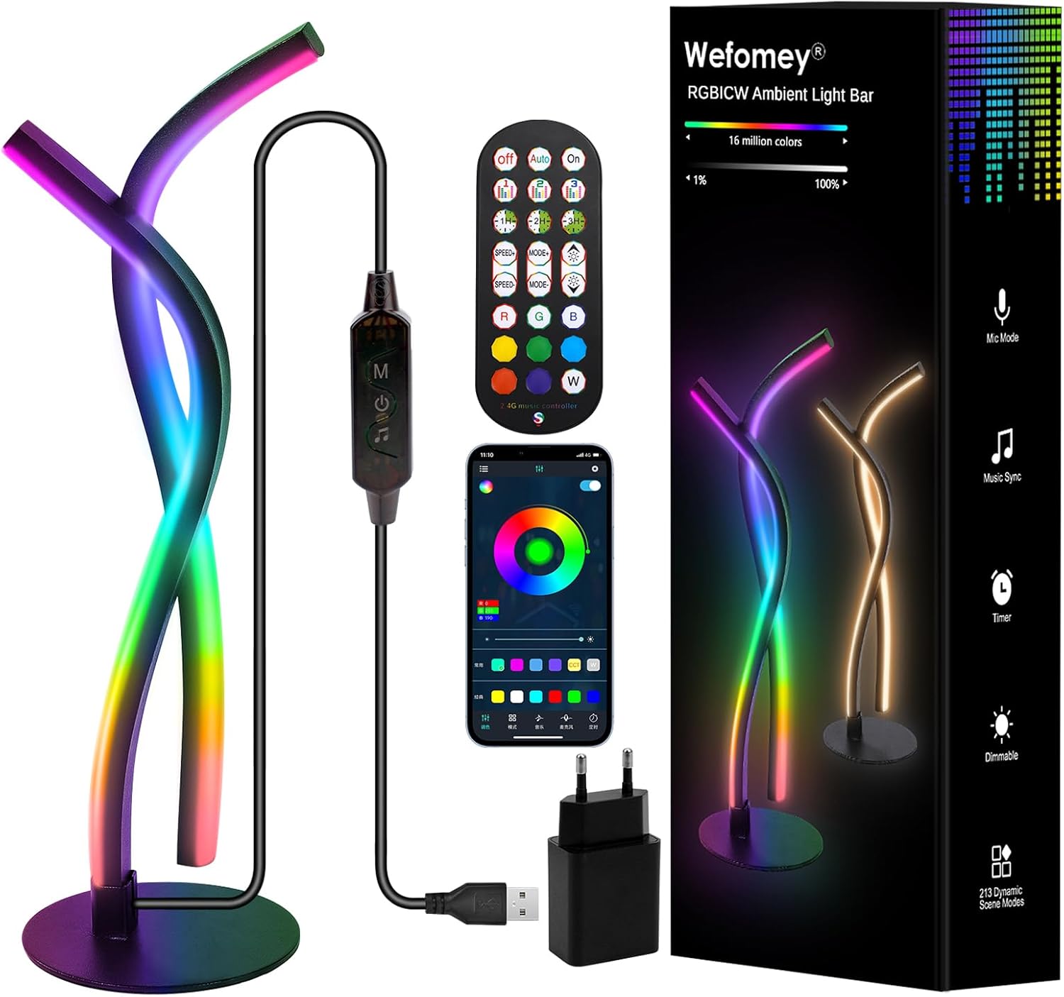 Wefomey LED Nachttischlampe Dimmbar, RGB Warmweiß Metall Dekolampe Atmosphäre Spiral Tischlampe Modern, App Steuerung, Nachtlicht Mit Musiksynchronisierung,für Arbeitszimmer Wohnzimmer Schlafzimmer...