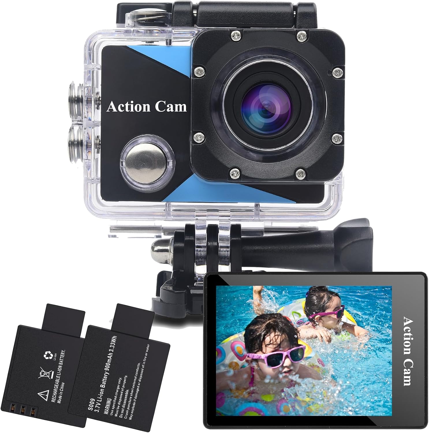 Nvgfelis Action Cam FHD 1080P, 140 Grad Weitwinkel ActionKamera , Unterwasserkamera wasserdicht bis 30M, mit Zwei 900 mAh wiederaufladbare Akkus...