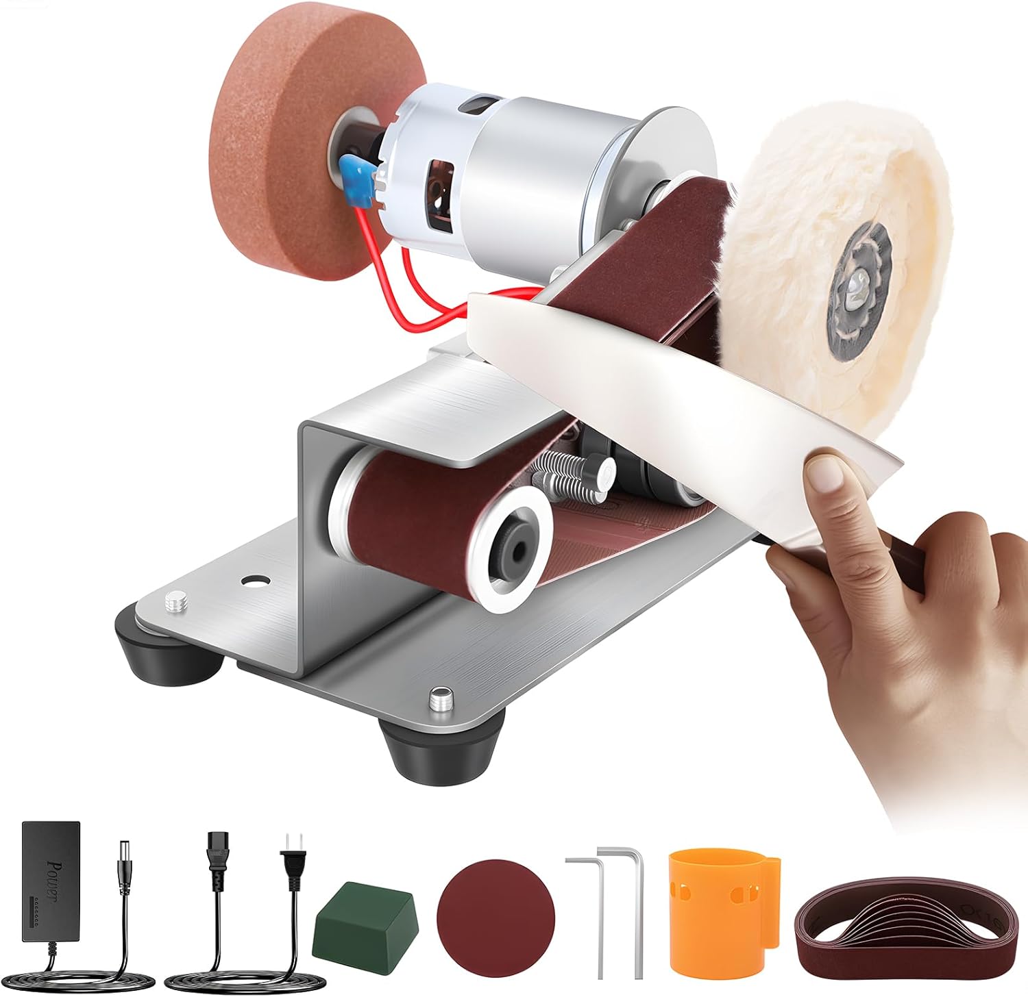 Yofuly Mini Bandschleifer, Doppelschleifer 7-Stufig Verstellbarer Polierer mit 330 * 30 mm Schleifbänder