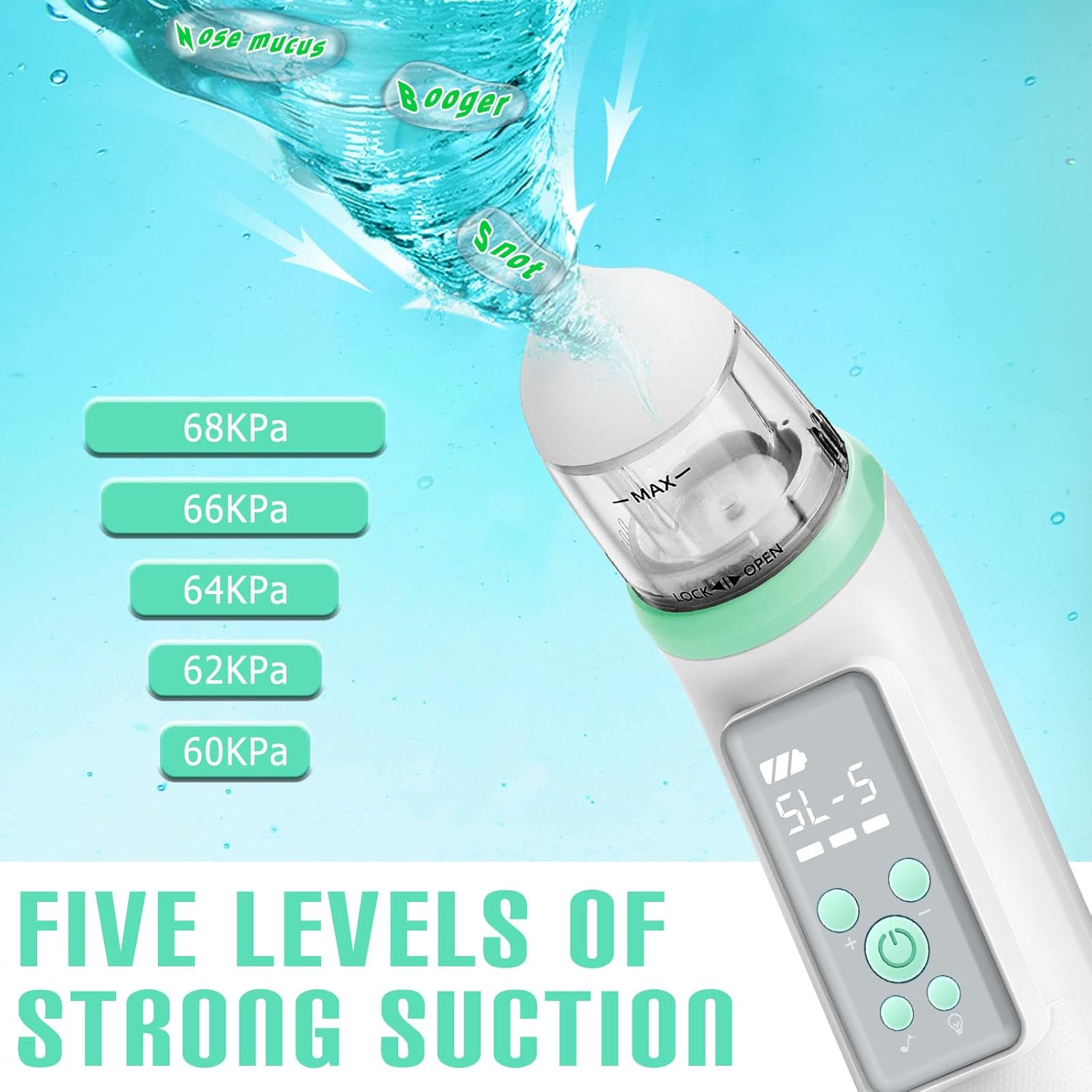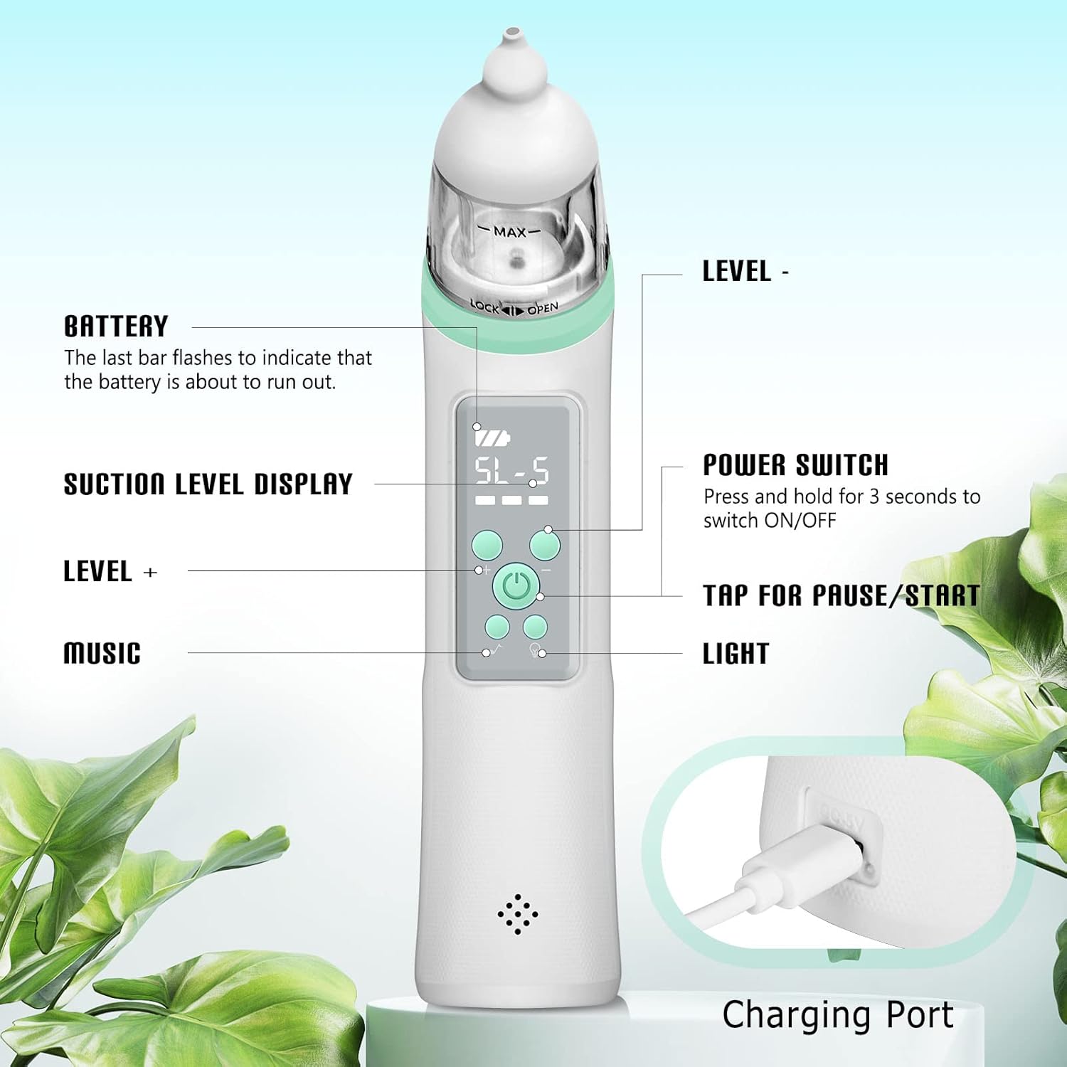 Winload Nasensauger Baby, Nasensauger Staubsauger für Neugeborene mit 5 Saugstärken und 3 Größen Tip, Nasenschleim Sauger USB Aufladen für Säuglinge/Kleinkinder, Elektrischer Nasenreiniger mit Musik & Licht