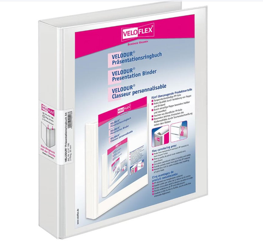 10 X Veloflex Präsentationsringbuch VELODUR® 4143196, A4 4 Ringe 25mm Ring-Ø PP-kaschiert, 2 Außentaschen, weiß 10 Stück