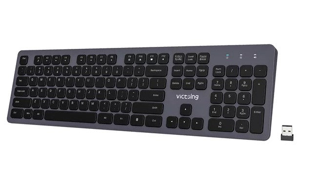 Victsing 2,4 G kabellose Tastatur, (QWERTZ) über USB wiederaufladbare kabellose Computertastatur, leise, ergonomische, schlanke Tastatur mit 12 Multimedia-Verknüpfungen für Laptops, Desktop, Chromebook, Notebook