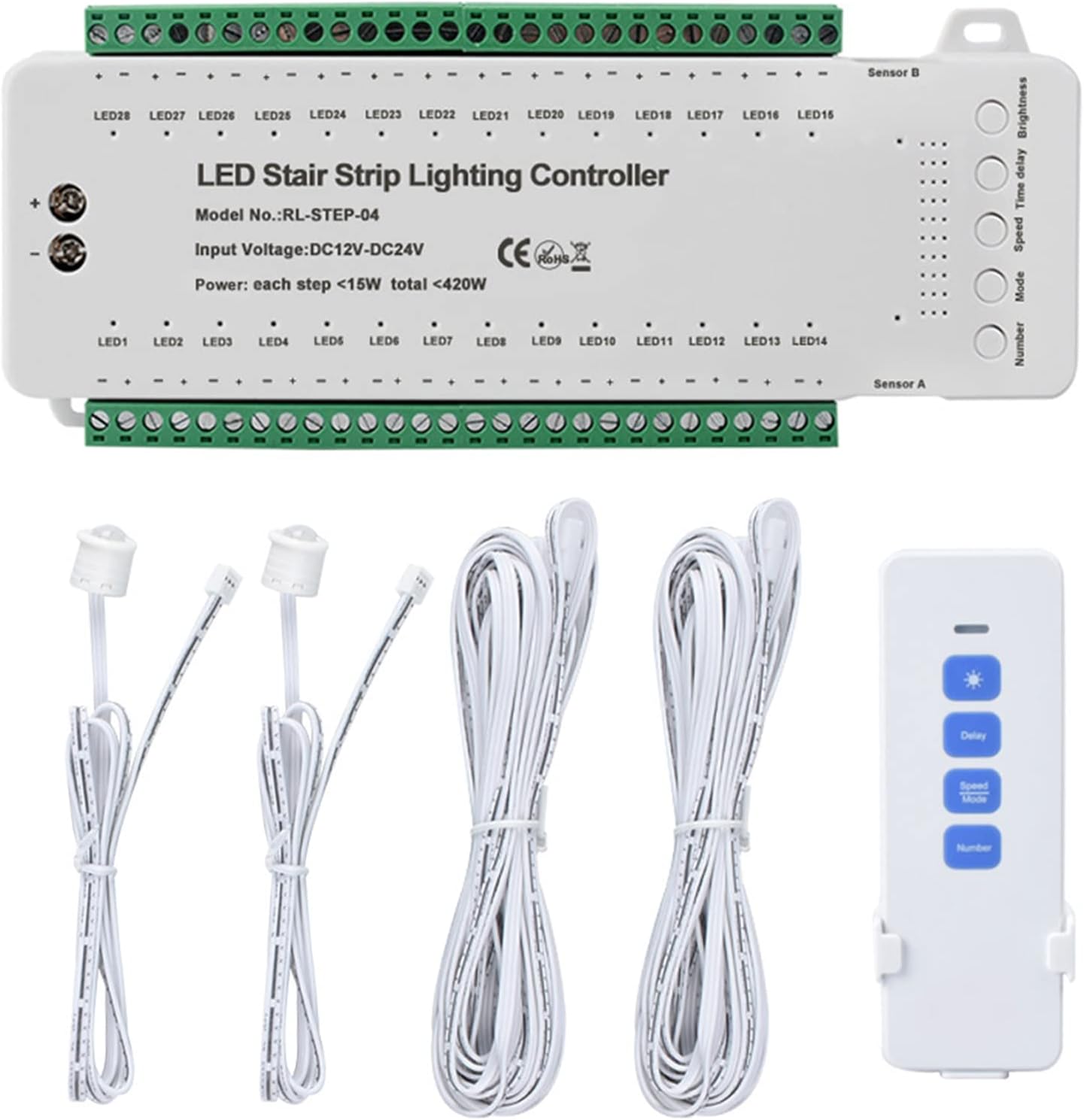 XLSBZ LED-Treppenstufenbeleuchtung Controller mit Bewegungsmelder,28 Stufen Treppenlichtsteuerung mit Fernbedienung
