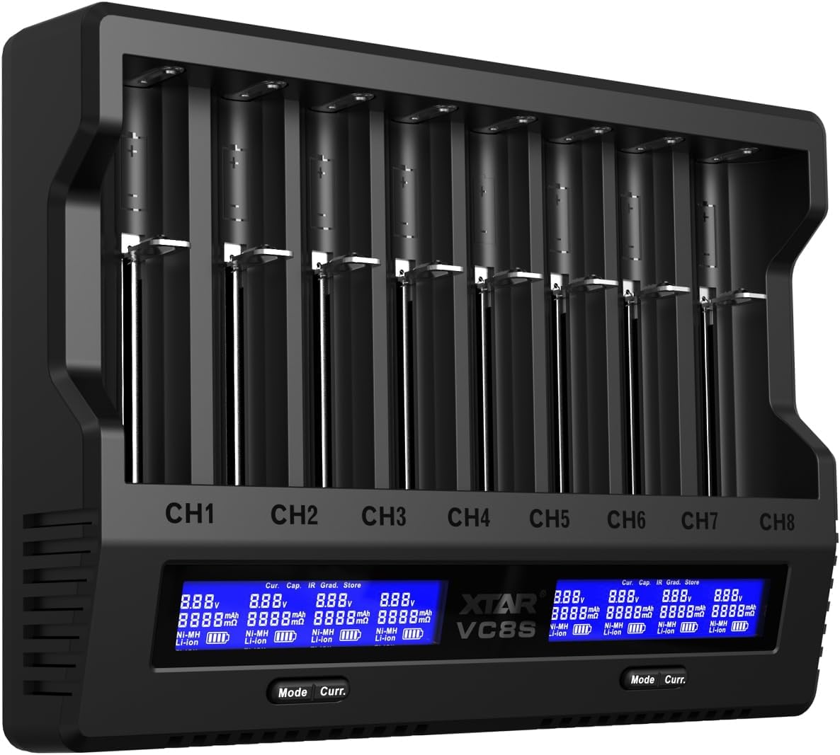 XTAR VC8S 18650 Universal Akkuladegerät USB C Schnellladegerät mit LCD-Display, Kapazitätsprüfung und 8 Ladeslots für 1.2V AA 21700 26650 Wiederaufladbare...