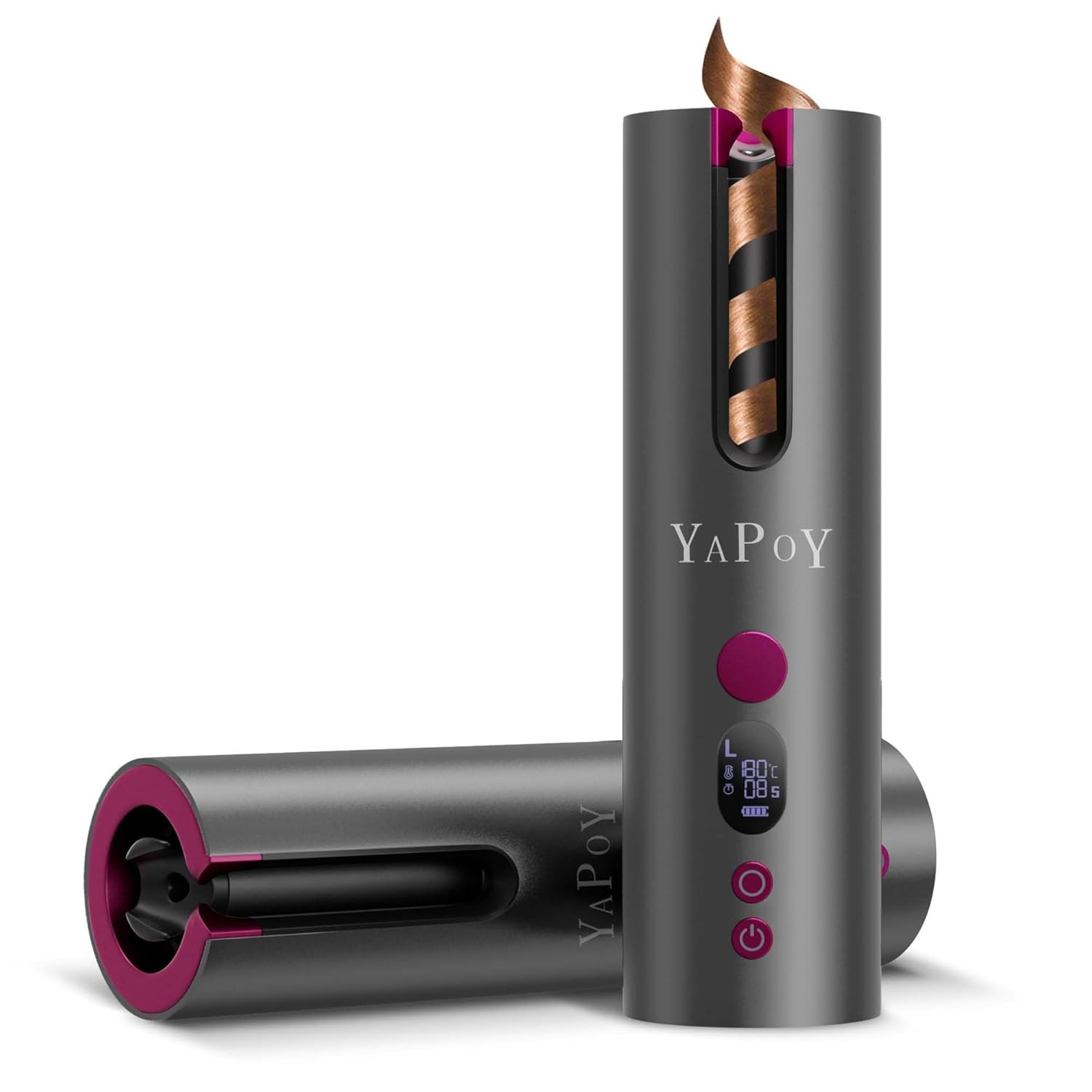 YAPOY Schnurlose Automatischer Lockenstab mit 5 Temp,Timer Magenta