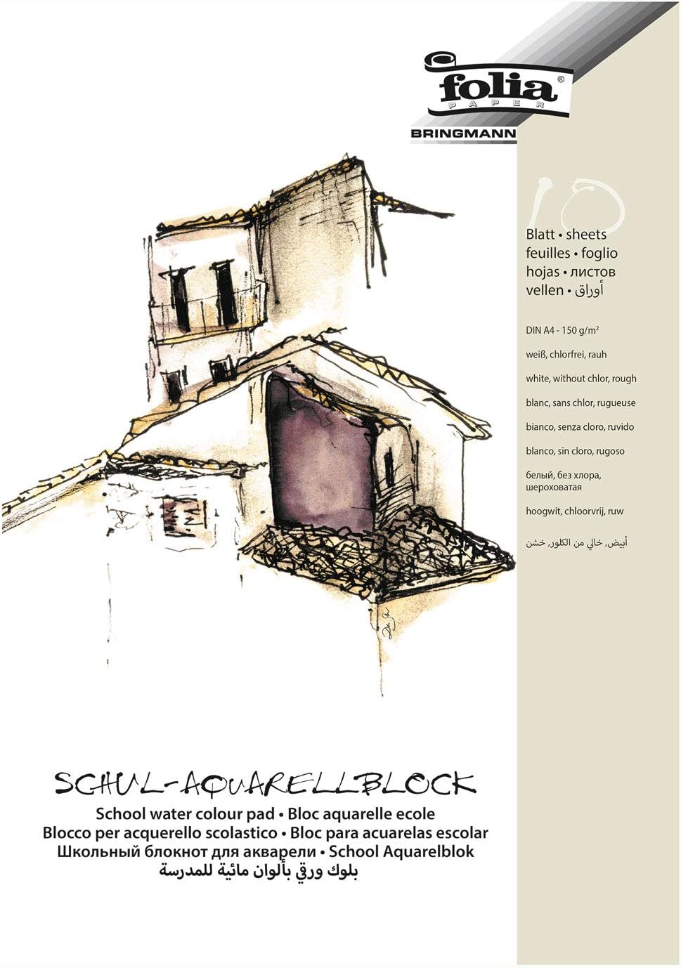 Folia 8353 Schul Aquarellblock 150 g/qm DIN A3 10 Blatt 5 Stück 3 fach geleimt Block mit weißem, rauen Aquarellpapier...