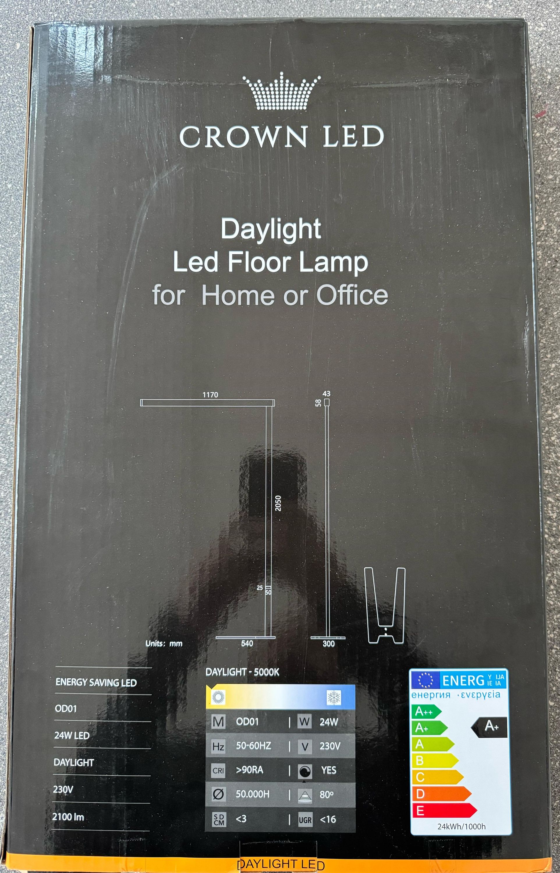 Crown Led Daylight Floor Light Tageslicht-Stehleuchte für Zuhause oder das Büro24W Led Daylight230W2100 lm50.000HLänge: 2050 mmBreite: 1170 mm