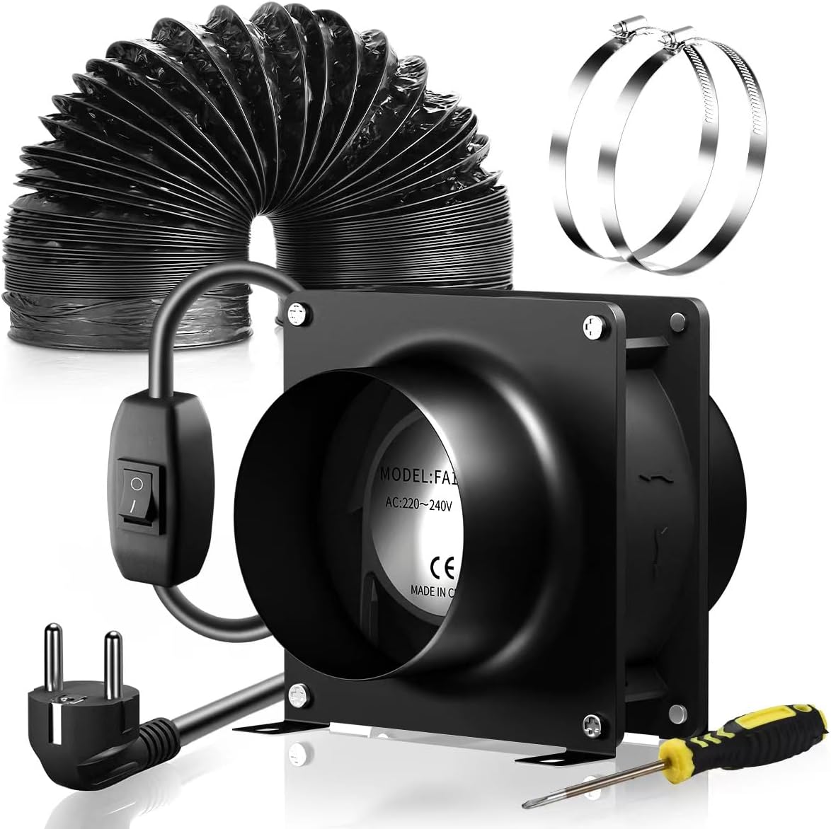 FanGoFast 100mm Axial-Rohrventilator, 180m³/h Axialventilator Abluftventilator Rohrventilator mit Zwei Klemmen und 2m Schlauch für Grow Tent, Garage, Werkzeugraum, Büro Spezifikationen:...