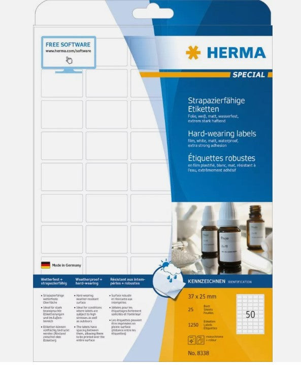 Herma SPECIAL Wetterfeste Folienetiketten A4, 37 x 25 mm, weiß, extrem stark haf Herma SPECIAL Wetterfeste Folienetiketten A4, 37 x...
