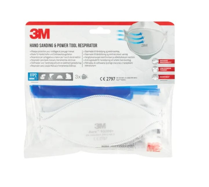 9 X 3M Aura 9320D+, FFP2 A Einweg-Partikel-Atemschutzmaske, 9 Stück(3 pack) 3M™ Aura™ Staubmaske für manuelles und maschinelles Schleifen 9320D+...