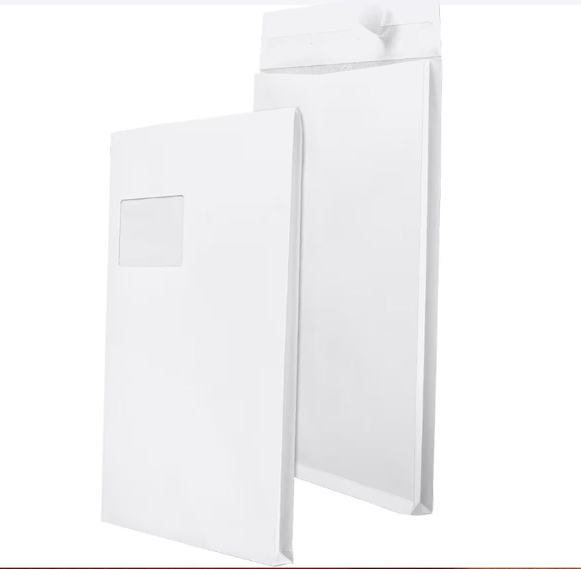 Mailmedia 100 Faltentaschen mit Steh-/Klotzboden C4 120 g/m² mit Fenster Faltentaschen mit Steh-/Klotzboden (20 mm Falte), Format: DIN C4, Ausführung:...