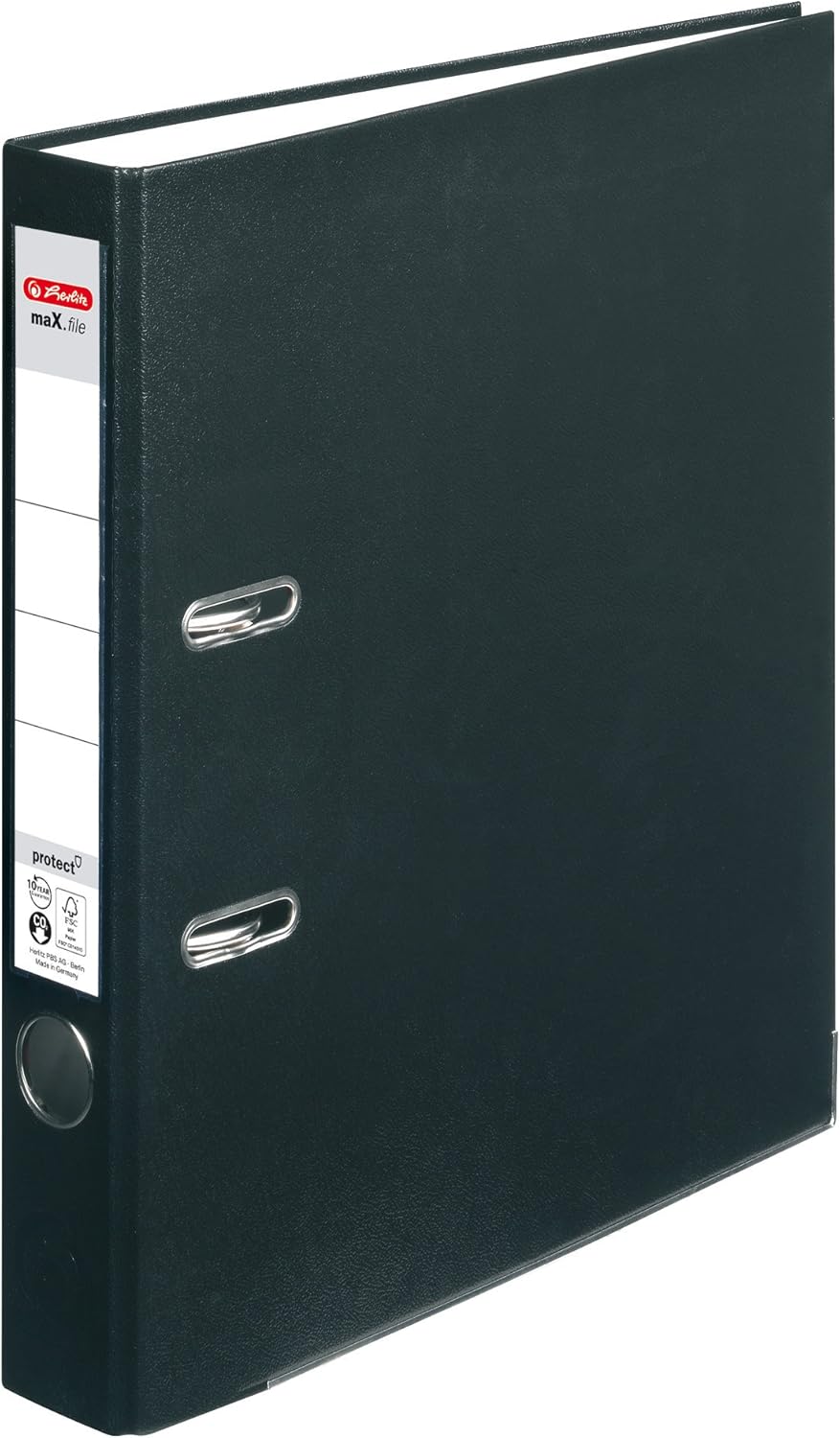 10 X Herlitz 5450804 Ordner maX.file protect (A4, 5 cm, mit Einsteckrückenschild) schwarz 10 stück PP-Kunststoffbezug Kantenschutz, standfest Einsteckrückenschild Logo-Prägung...
