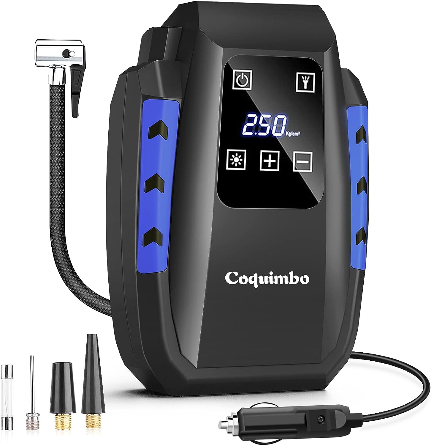 Coquimbo Tragbare Autoreifenpumpe, DC 12V Auto-Luftkompressor-Reifenfüller mit LED-Licht und Manometer, Luftpumpe für Autoreifen, Fahrrad, Motorrad, BallMarke CoquimboSpannung 12 VoltStromquelle: Kabelgebunden,...