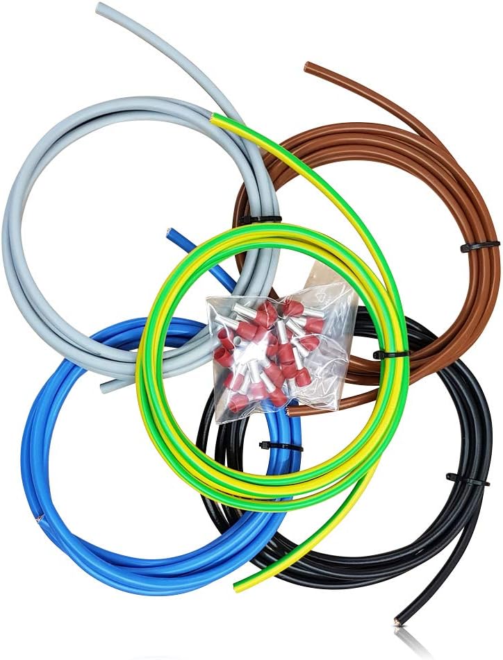 grenda-hammer® | Kupfer Verdrahtungssatz H07V-K 10qmm 5 Farben je 2 Meter und 25 isolierte Aderendhülsen Kabelbaum für Zählerschrank und Elektroverteiler...