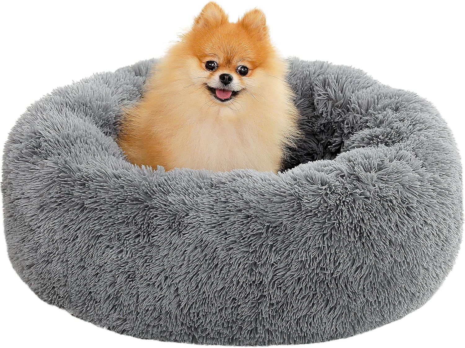 PETEPELA Hundebett Plüsch weich warm Donut Haustierbett für Hund Grau M