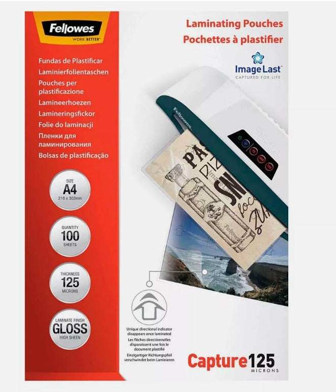 Fellowes Laminierfolientasche DIN A4 glänzend 250 mic Inhalt: 100 Stück Laminations-Art Heißlaminationfür Formate A4Folienstärke (je Seite) 125 micronOberfläche glänzendSchweißnaht kurze...