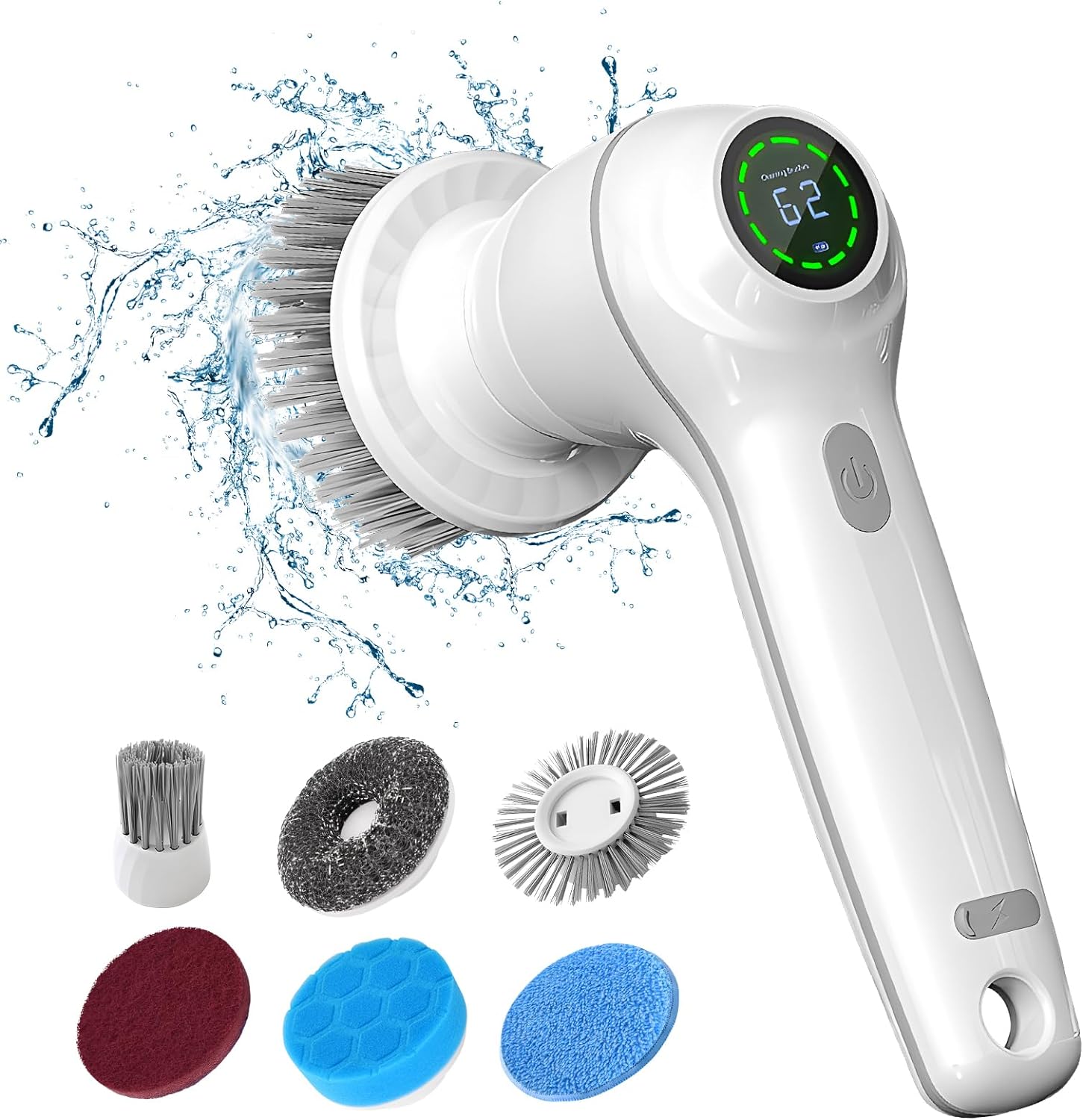 CkeyiN Elektrische Reinigungsbürste, Kabelloser Fugenreiniger mit 7 Austauschbaren Bürstenköpfen Handheld Power Spin Scrubber Mit LED Anzeige, 2 Modi, Weiß