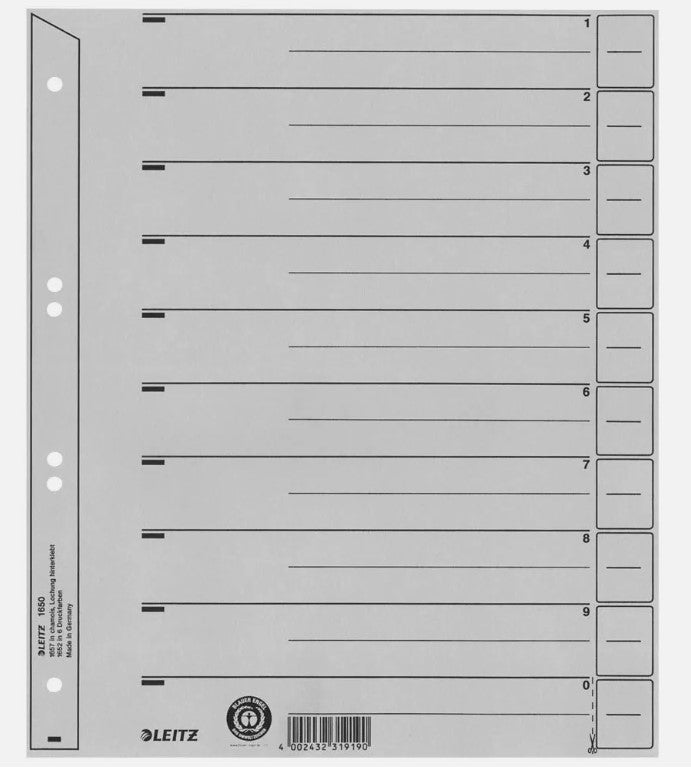 1000 x LEITZ Trennblätter 1650 1-0 grau, (1000 St. in pack)
