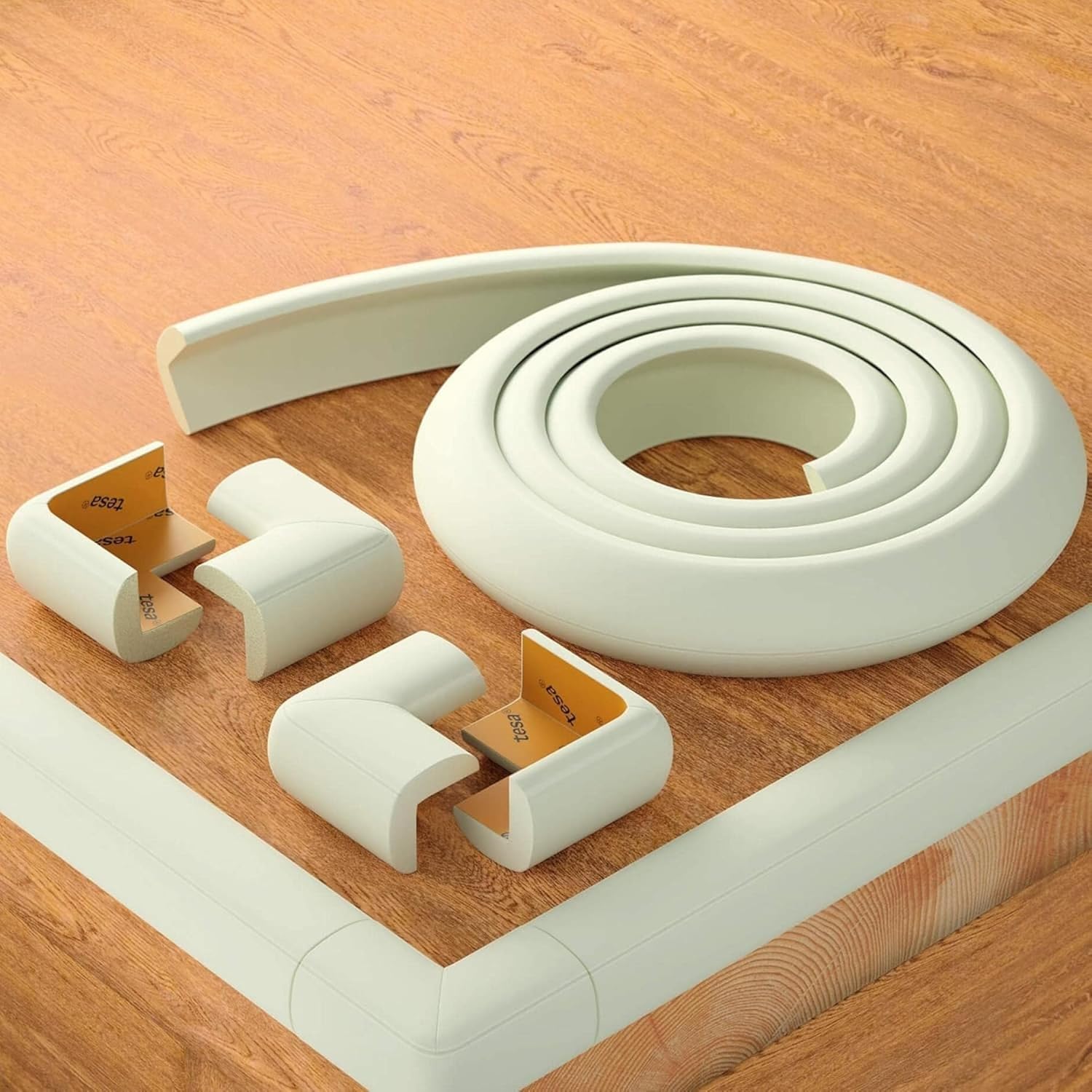 BEARTOP Kantenschutz - für Babys,selbstklebend,3m+8 Ecken - Wollweiß