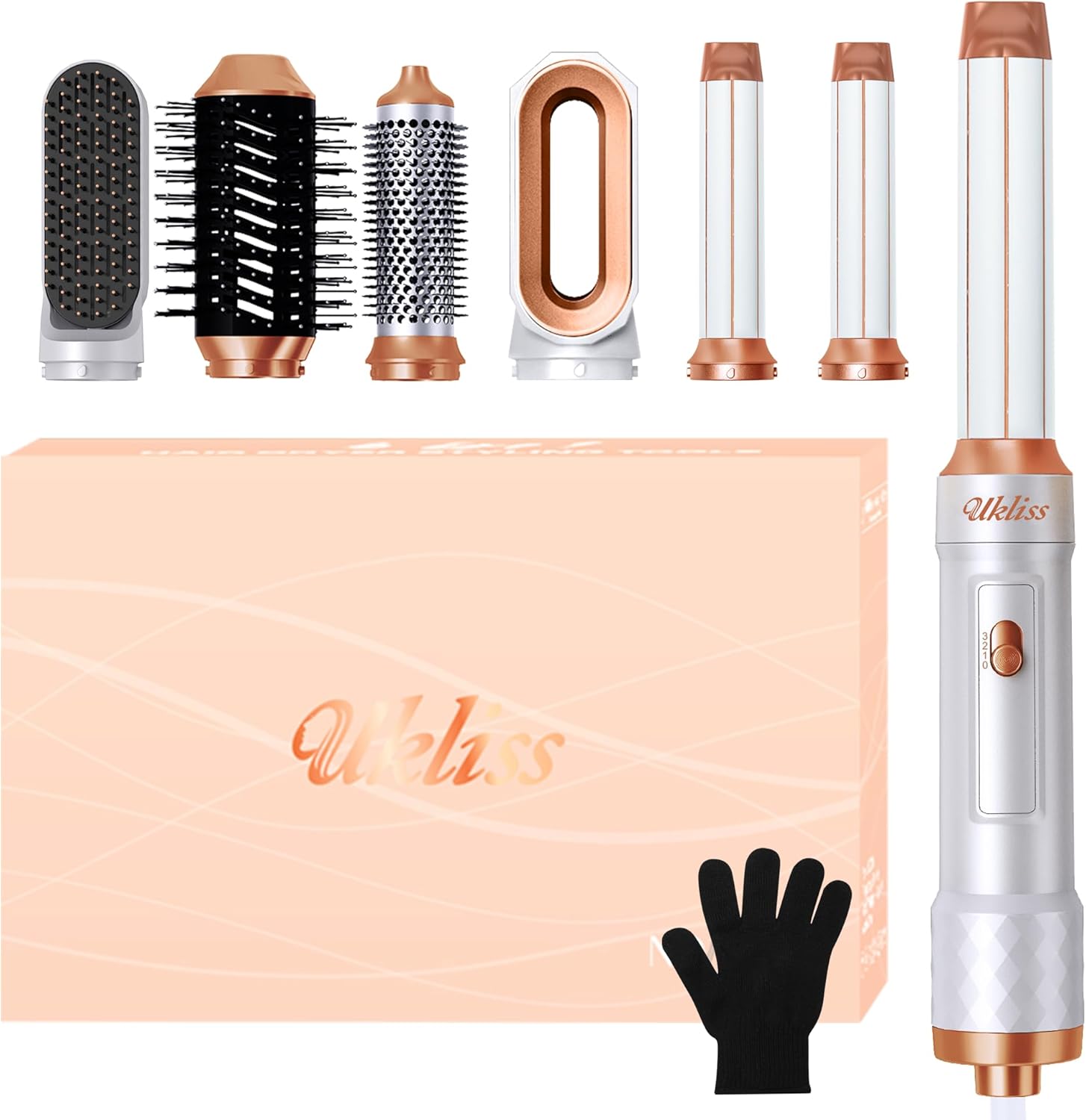UKLISS 6 IN 1 Haarstyler Set, Warmluftbürste mit 6 Ersatz: Air Auto-Wrap Lockenstab, 1000W Ionen Haartrockner