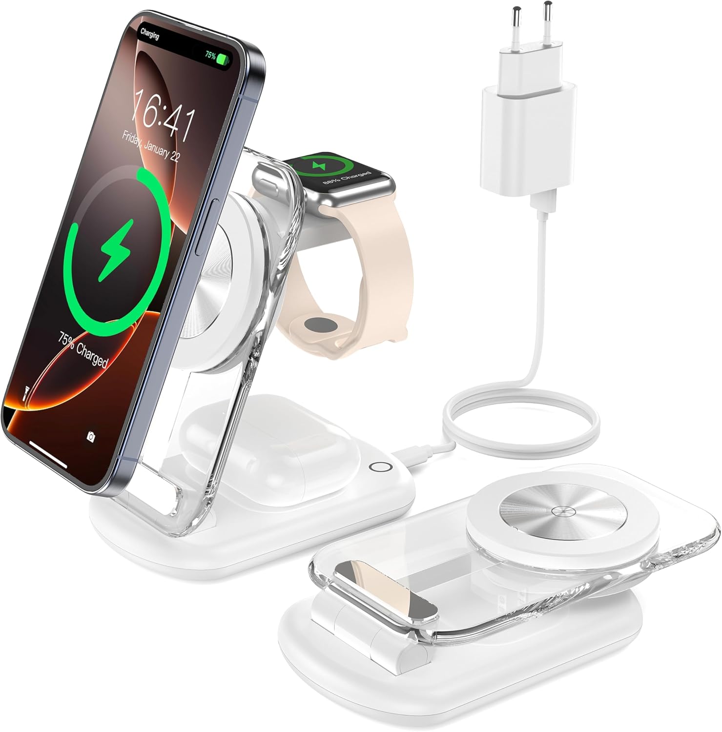 Mag Safe Ladestation, 3 in 1 Ladegerät,faltbar einstellbar Winkel mit Atmosphärenlicht,