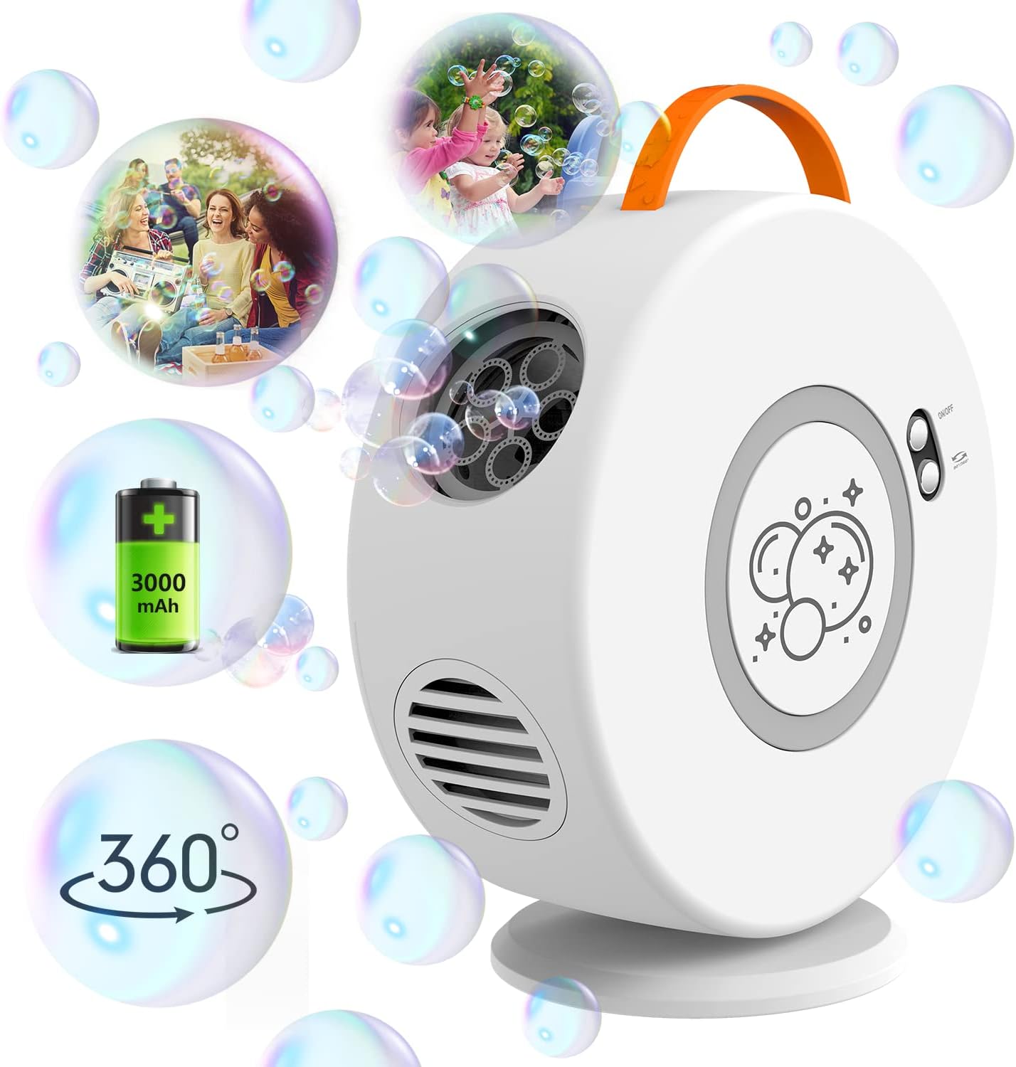 Seifenblasenmaschine, Blasenmacher Spielzeug für Kinder, 90°/360°drehbar,Weiß