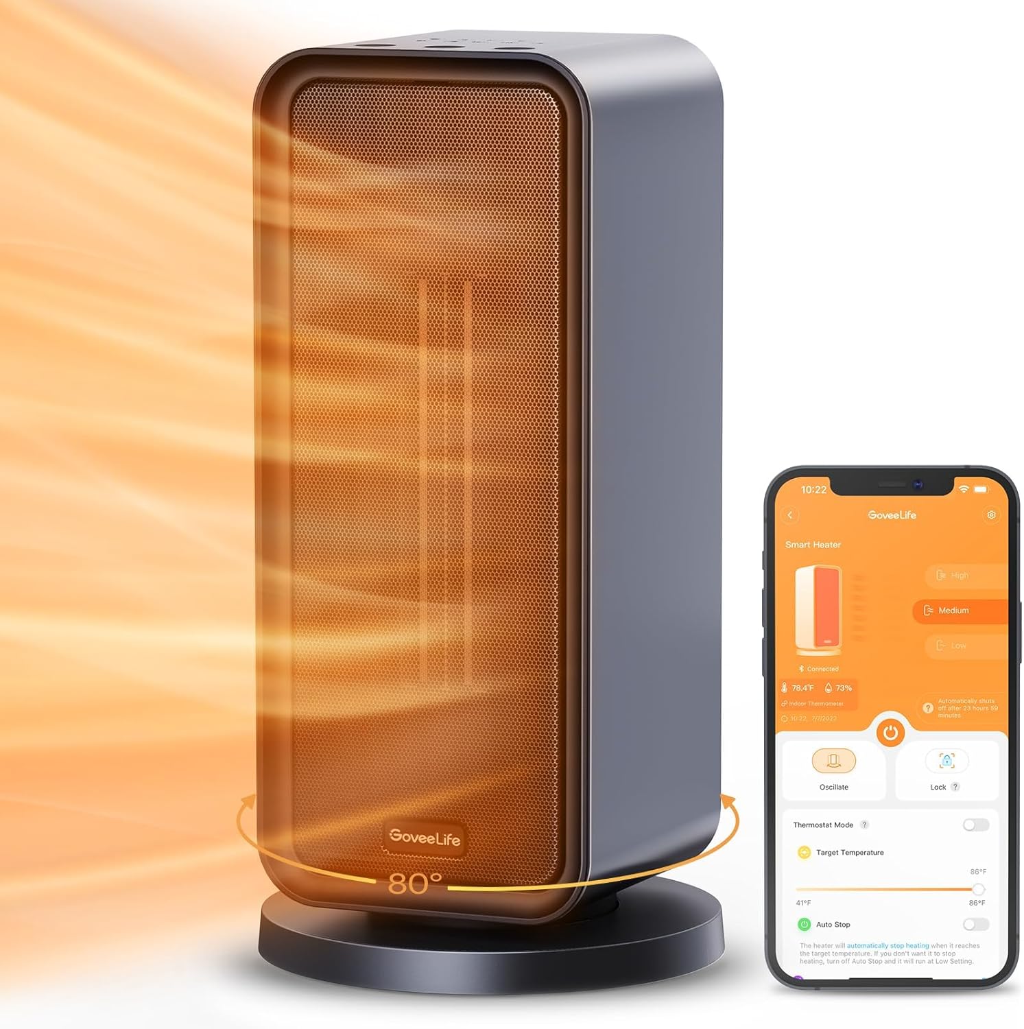 GoveeLife Intelligenter Keramik-Heizlüfter,mit Thermostat, 75°-Oszillation, App- und Sprachsteuerung,