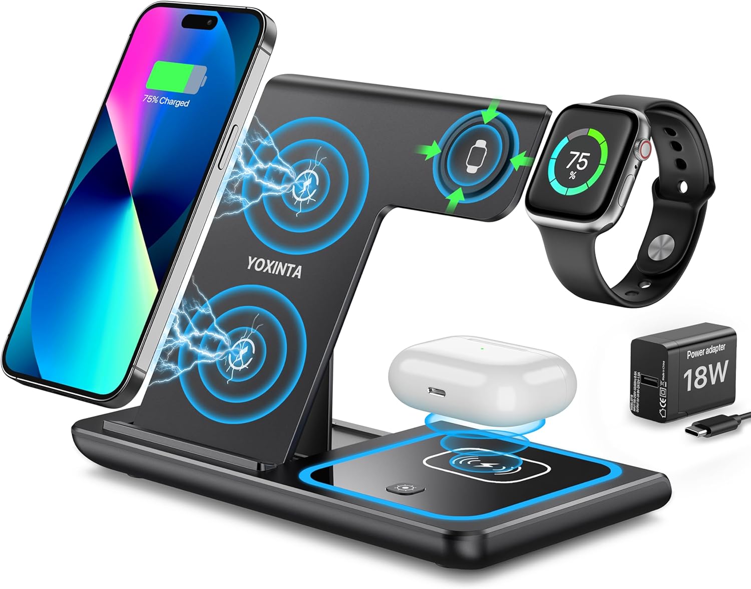 Yoxinta 3-in-1-Ladestation für iPhone 16 15 14 13 12 11 X Pro Max & Apple Watch Schwarz