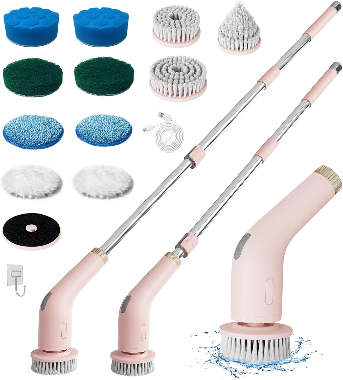 NanoMin 13 in 1 Elektrische Reinigungsbürste mit Verlängerungsgriff,Badzubehör-Set,Rosa