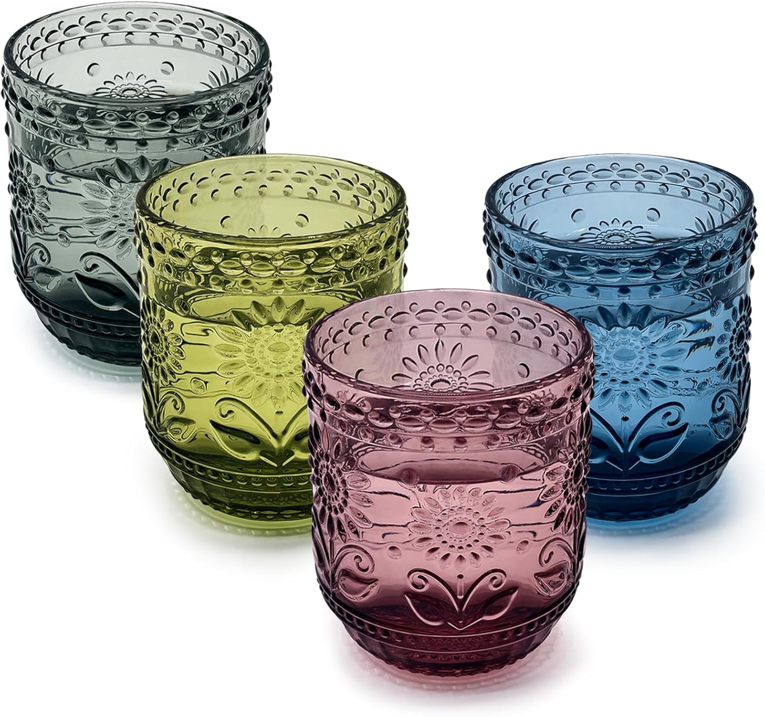 UPZAI 360ml Vintage Wassergläser 4er Set Bunte Trinkgläser Set aus Glas