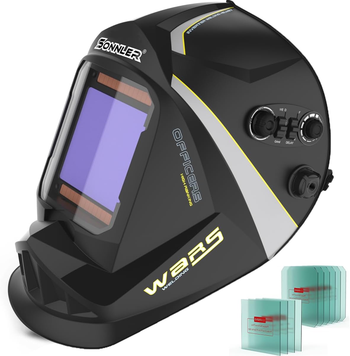 SONNLER Automatik Schweißhelm großem Sichtfeld (10 x 9,3 cm), Echtfarben-Schweißmaske, solar-/akkubetrieben mit 4 Lichtbogensensoren, Schutzstufe 4–5/9–9/13 für WIG-, MIG- und...