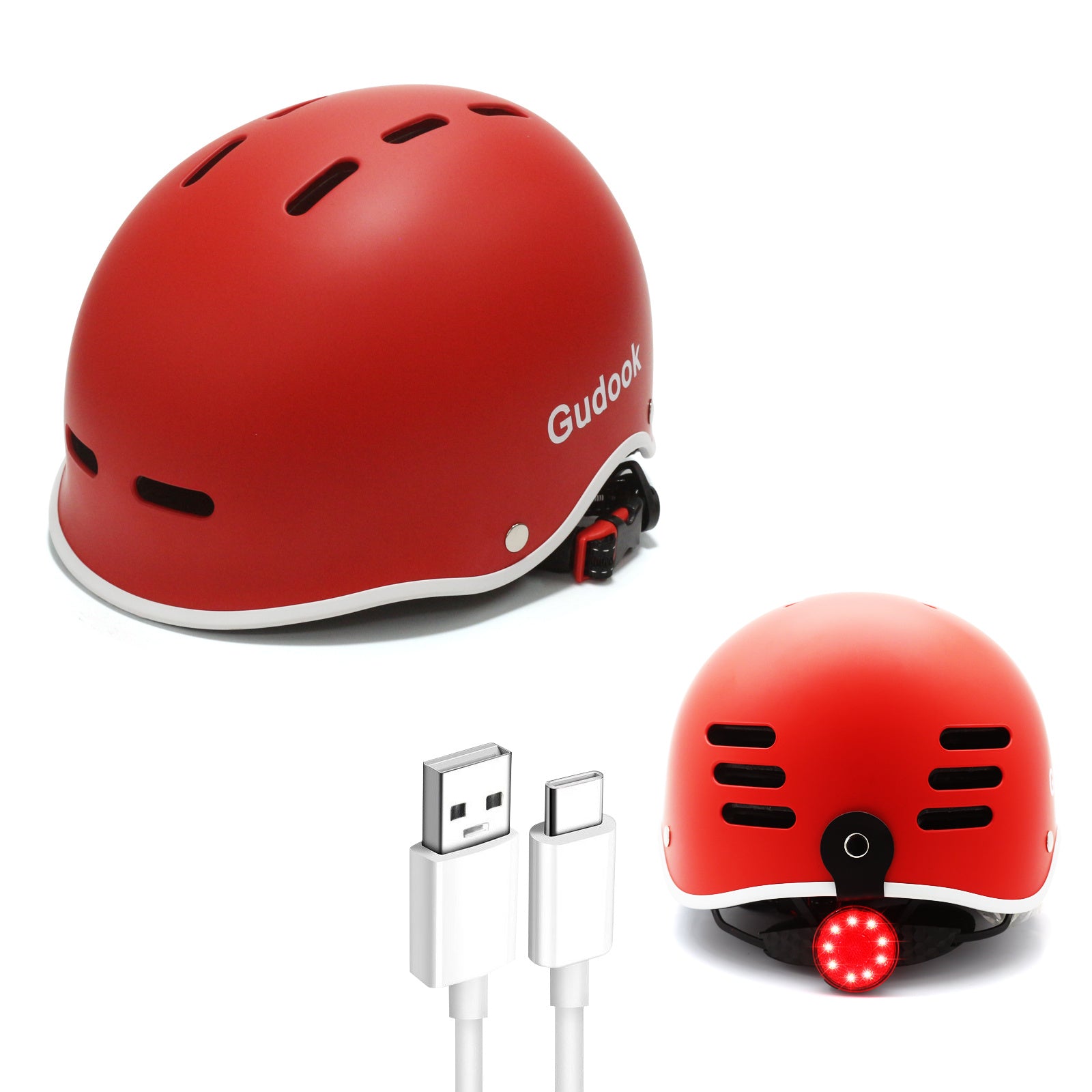 KY-B007 Skate Scooter Urban Commuter Helm mit LED-Rücklicht (L) 58-61 Rot LED-Helm * USB-Ladeanschluss, Typ-C-Ladeanschluss * Verdickte EPS-Pufferschicht * Weicher...
