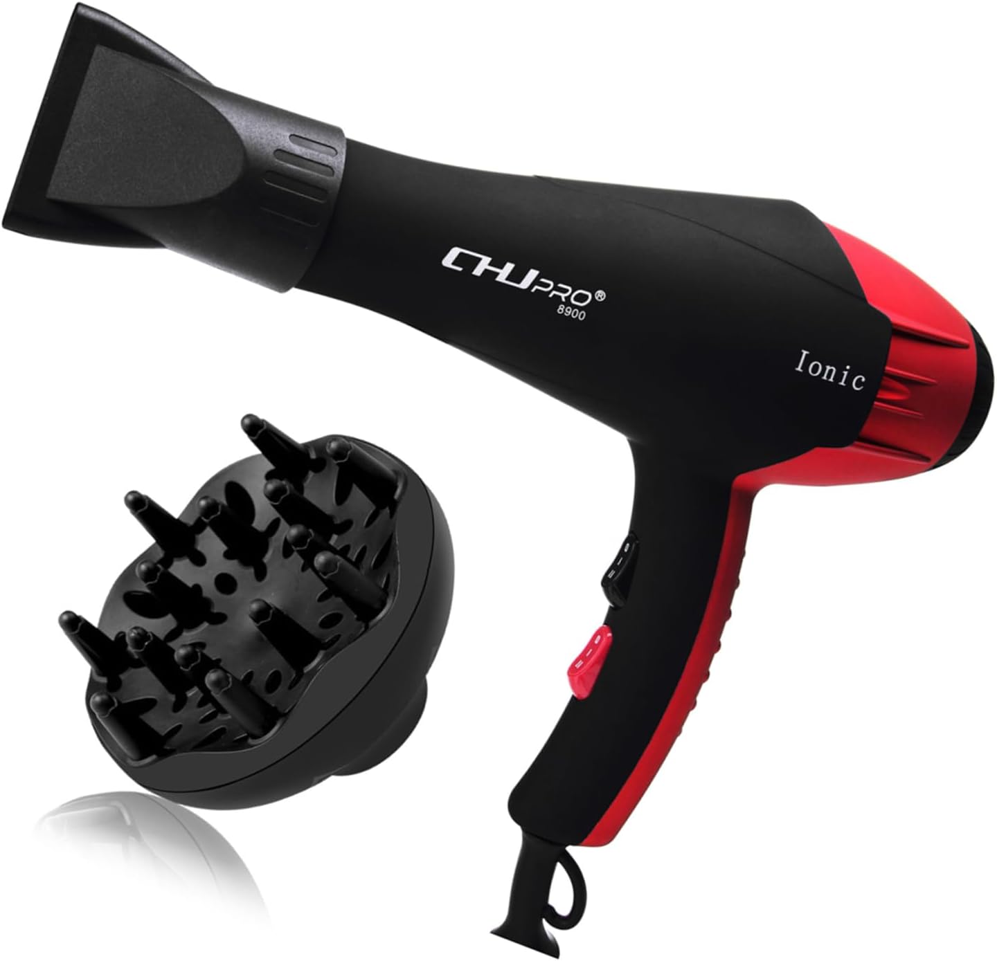 CHJPRO Professioneller AC 2100 W Keramik-Turmalin-Ionen-Haartrockner mit Heiß-Kalt-Wärmeeinstellung für Zuhause und den Salon, 2 AC-Hub-Steckdosen (schwarz/Rot) HINWEIS : Wie neu,...