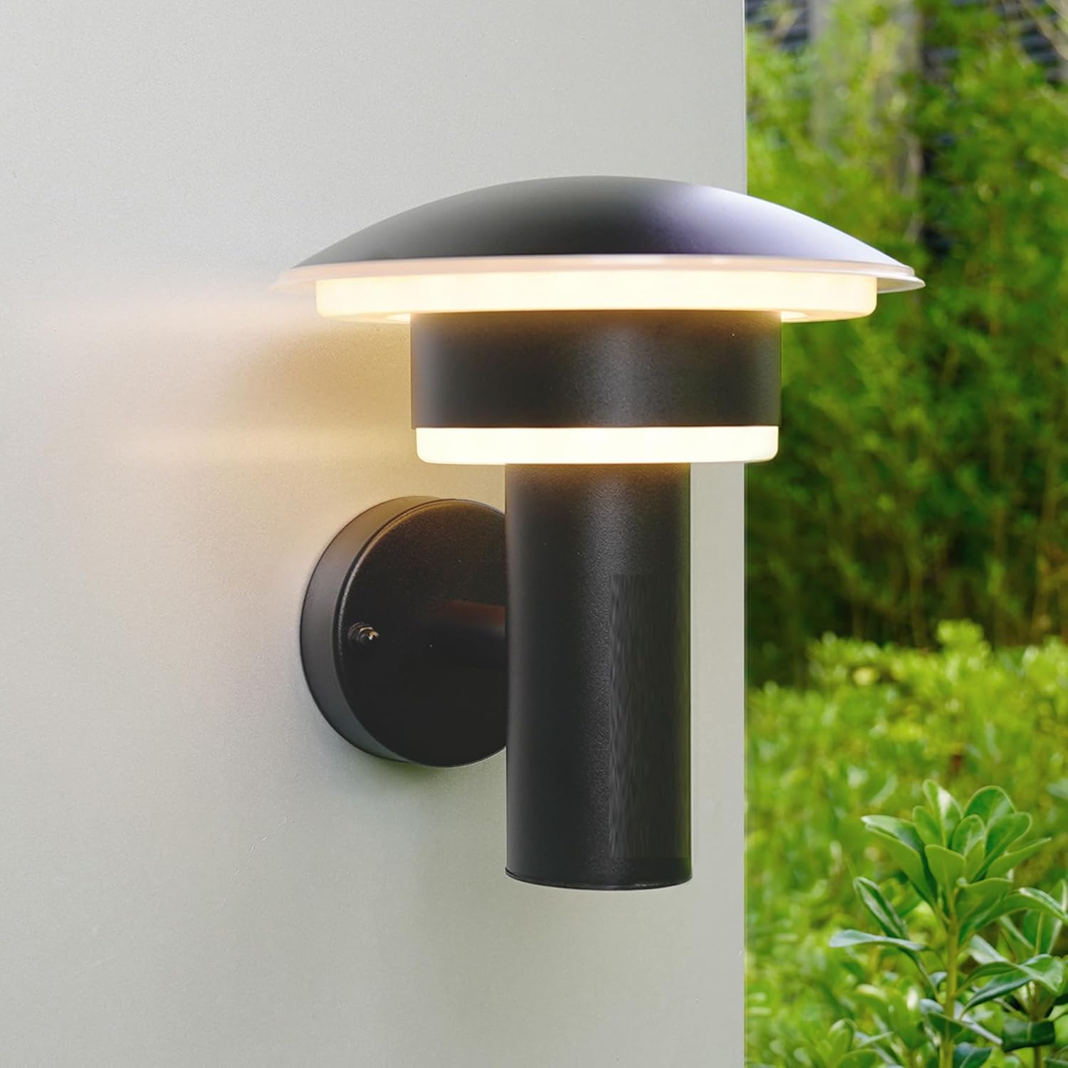 NBHANYUAN Lighting® LED Außenwandleuchte Wandlampe Schwarz SUS304 Edelstahl 3000K Warmweiß Licht Terrasse Garten 220-240V 1000LM 9W IP44 (ohne PIR Sensor)...