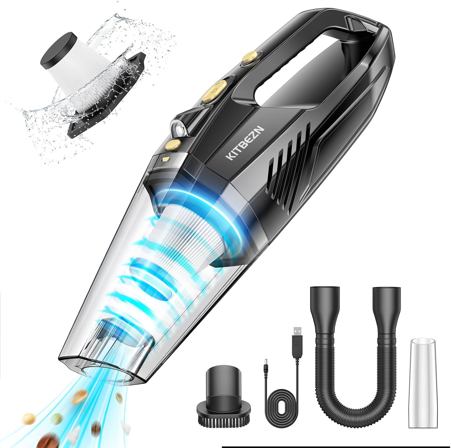 KITBEZN Handstaubsauger, Kabellos 12000PA USB Aufladbar Tragbar Leicht Mini Staubsauger, Nass und Trocken