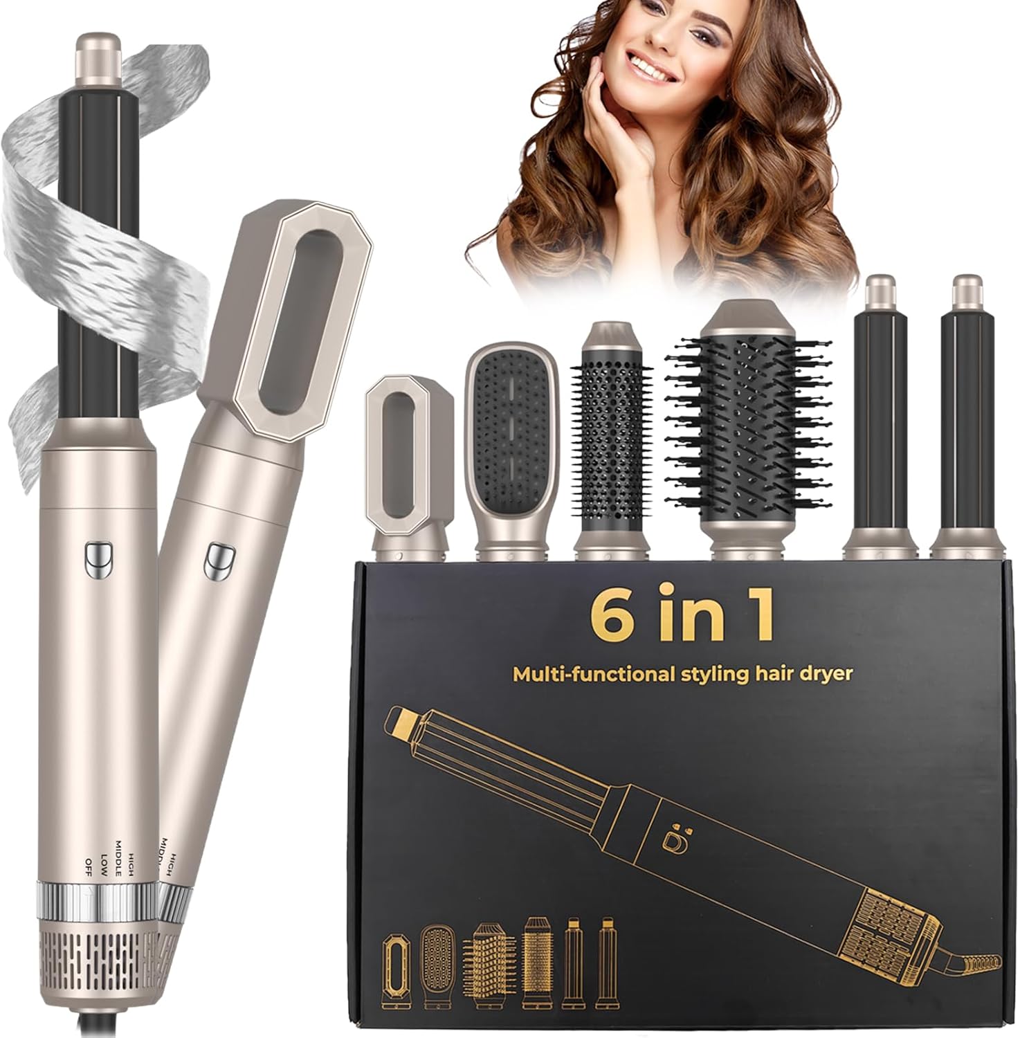 Hairstyler Airstyler, Hair Styler set 6 in 1 mit Haartrockner Föhn, Föhnbürste, Haartrockner für Trocknen, Glätten, Locken und Volumen, Massagekamm mit Ionen-Pflege für alle Haar Styling