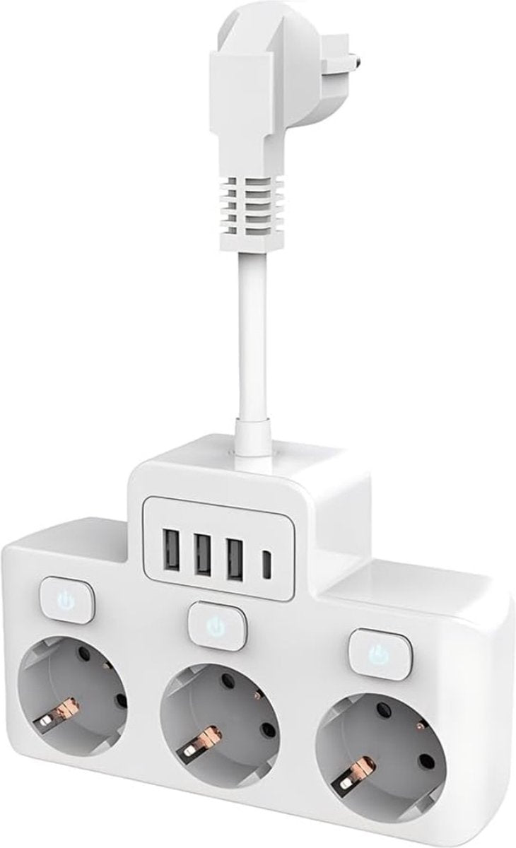 Fivtsme 7-in-1-Steckdosenleiste mit USB, 3 AC-Steckdosen mit 4 USB-Anschlüssen
