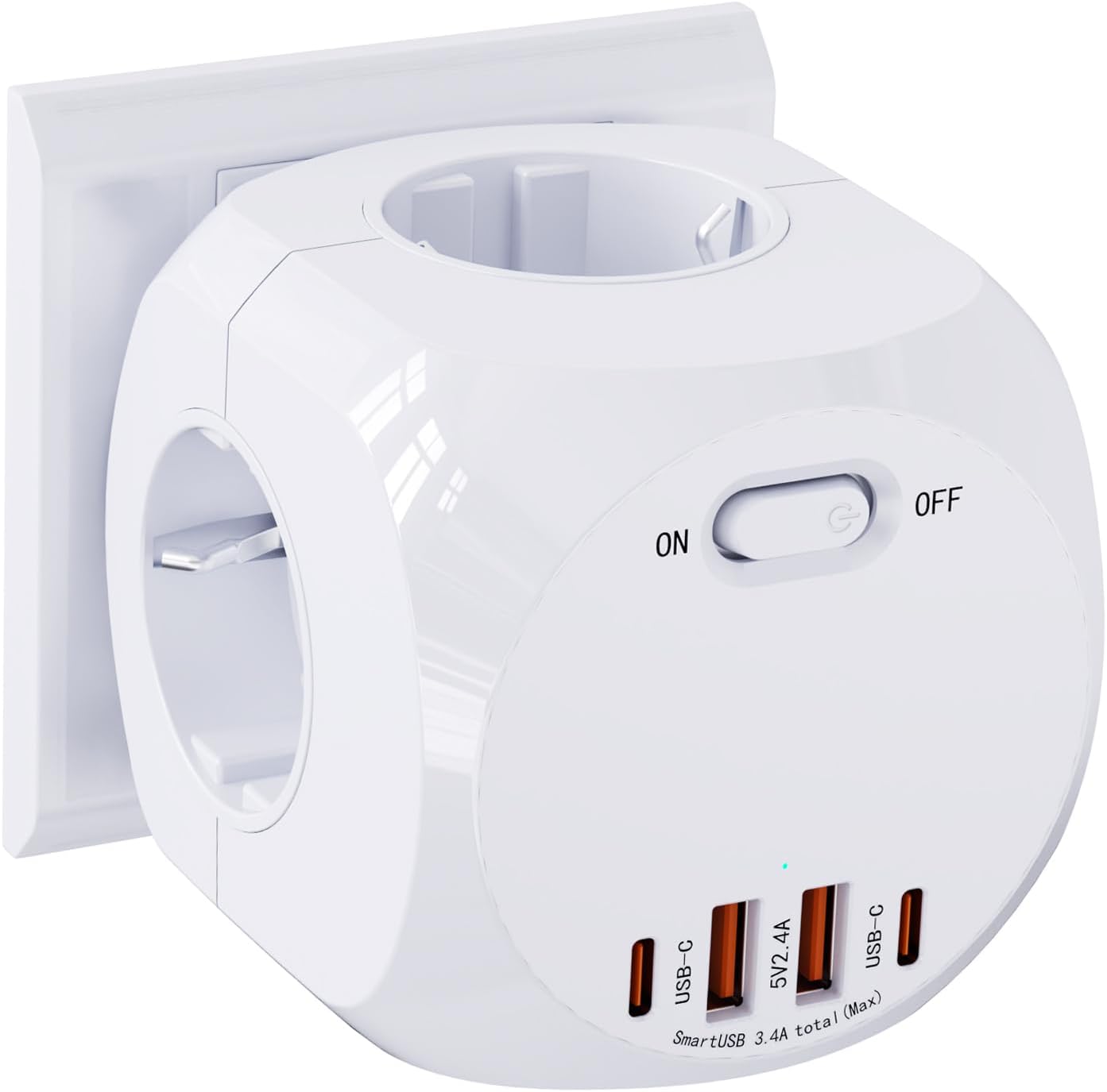 8-in-1 Steckdosenleiste, Mehrfachsteckdose mit USB, 4 AC-Steckdosen, 4 Steckdosen, 2 USB A, 2 USB C, 4000 W, Würfelsteckdosen für Büro,...
