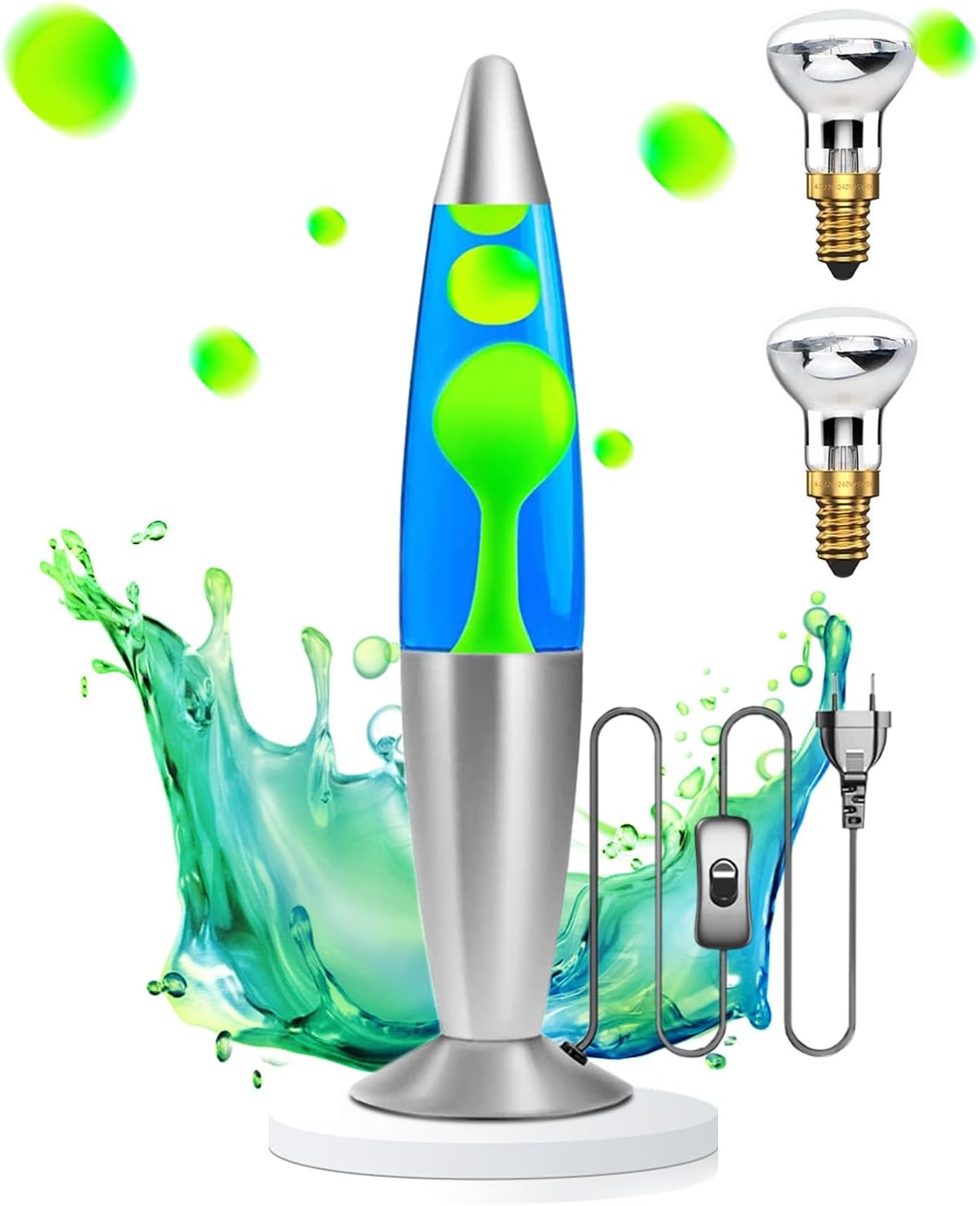 Lavalampe 13,5 Zoll Retro Rocket, Grün Wachs/Blau Wasser 1,85M Drähte