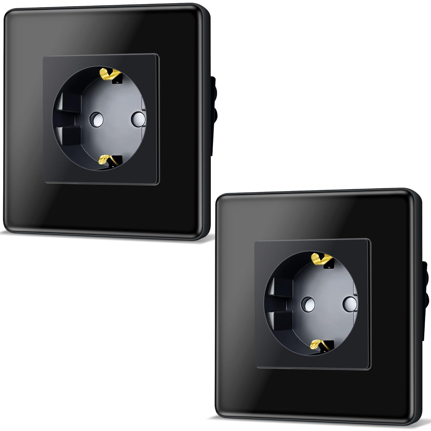 2 X TAWOIA Schuko Steckdose 1 Fach mit 2,5D Curved glas 2er-Pack schwarz