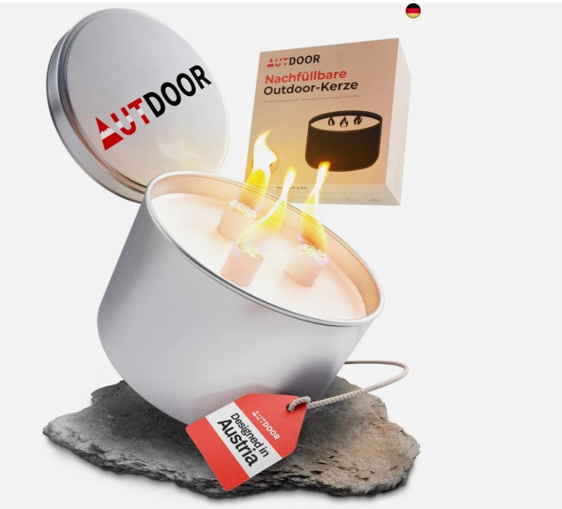 AUTDOOR Outdoor Kerze mit Dauerdocht und nachhaltigem Sojawachs - Dauerkerze