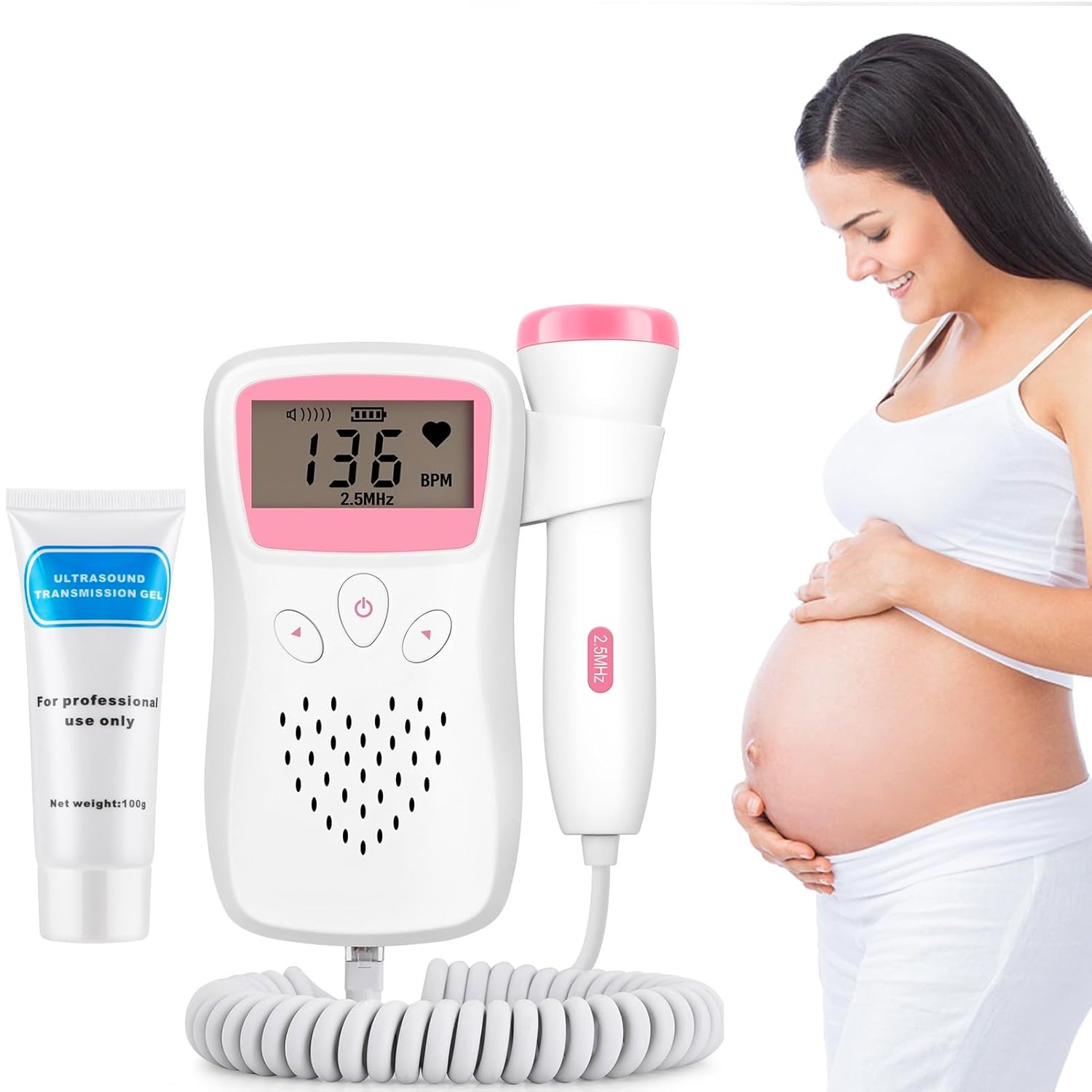 Fetal Doppler pink mit 2.5 MHz Sonde + 100 g Ultraschall Gel Beschreiben: -Zuverlässige FHF-Erkennung. -Erfassen Sie die fötalen Herzschlagsignale...
