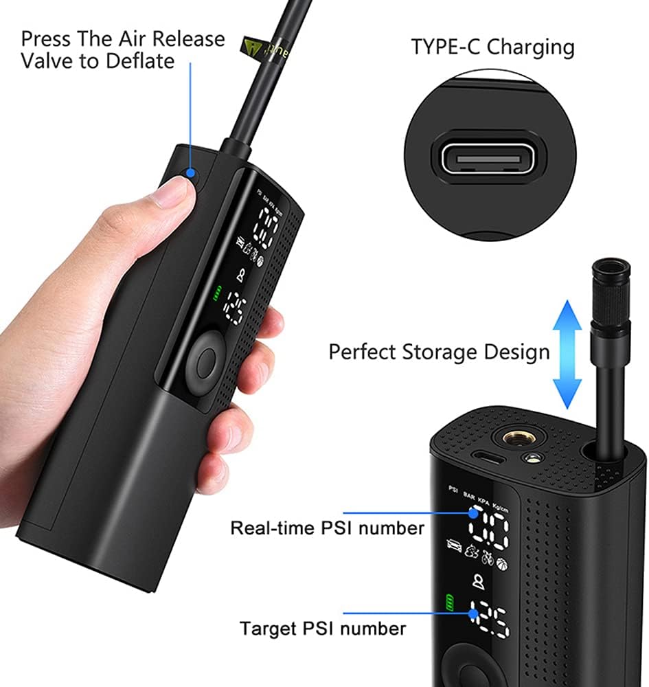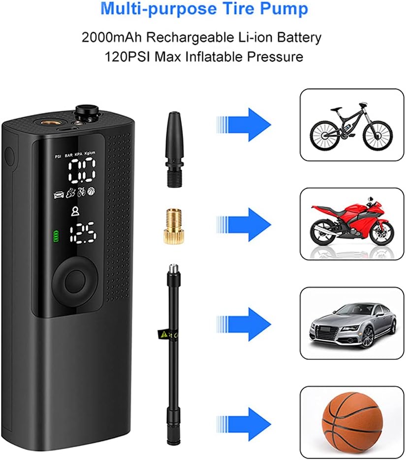 Bezior Elektro Fahrradpumpe Luftpumpe mit 2000mAh Akku, Verlängerungsrohr Luftpumpe Fahrrad, Kleine Fahrradluftpumpe Leichte Handpumpe MAX 120PSI für Roadbike Mountainbike