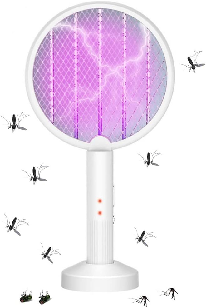 2Er Set Elektrische Fliegenklatsche, USB wiederaufladbare 3500 V mit UV-Strahlung und Stromschlag, wiederaufladbare Mückenvernichterlampe, Insektenvernichter für Zuhause, Camping, Innenbereich, Weiß...