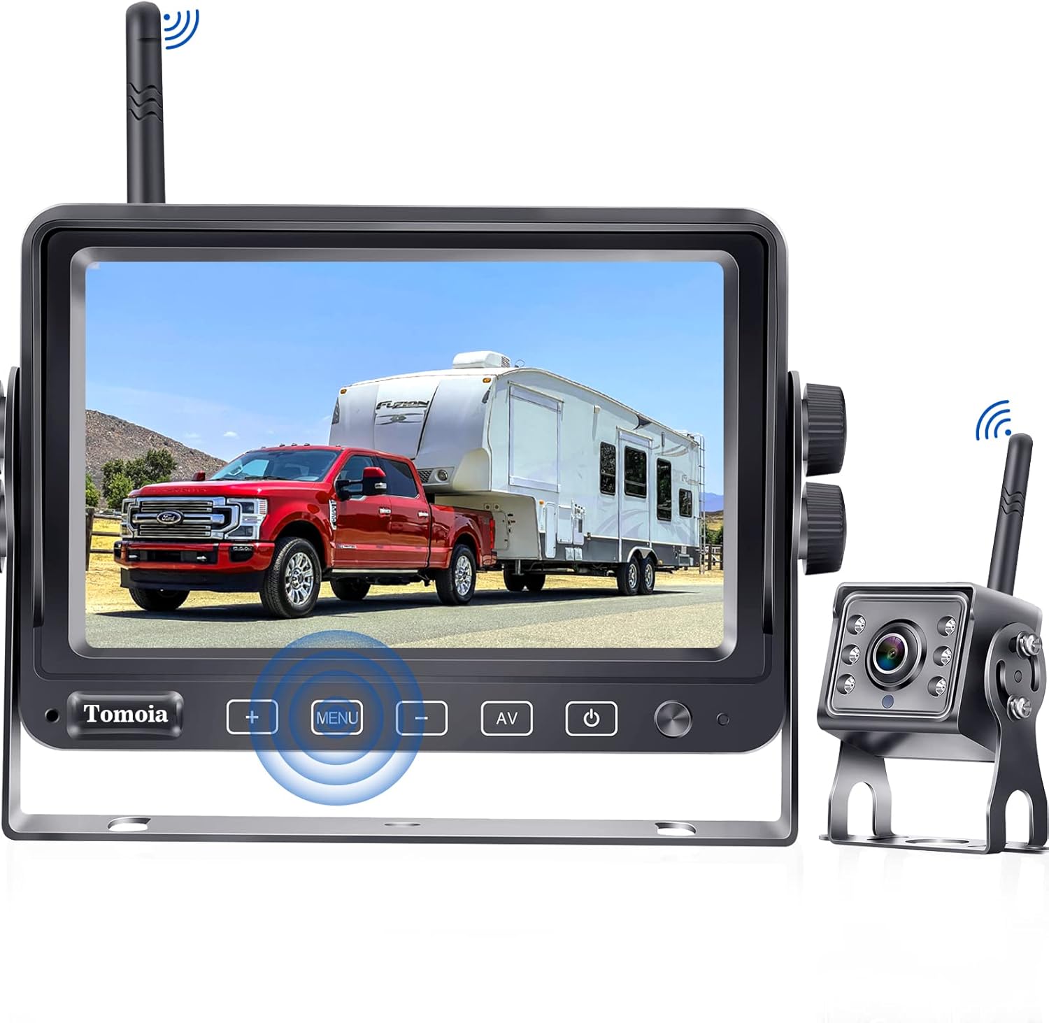 Tomoia Kabellose Rückfahrkamera 12,7 cm (5 Zoll) HD-Monitor Touch-Key-Bildschirm 1080P Rückfahrkamera System für Auto Wohnmobil Keine Signalverzögerung T4 Marke TomoiaKompatible...