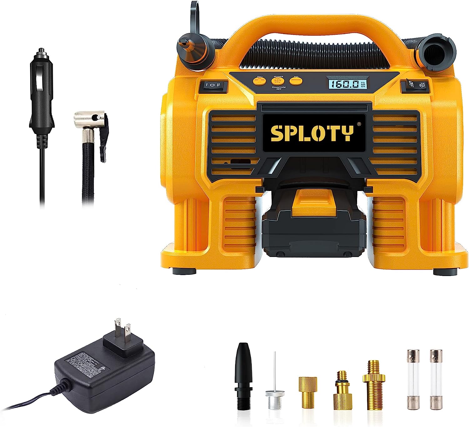 SPLOTY Reifenfüller Luftkompressor Tragbare kabellose Autoreifenpumpe, 20 V Akku und 12 V DC Dual Power elektrische Reifenpumpe, 160 PSI