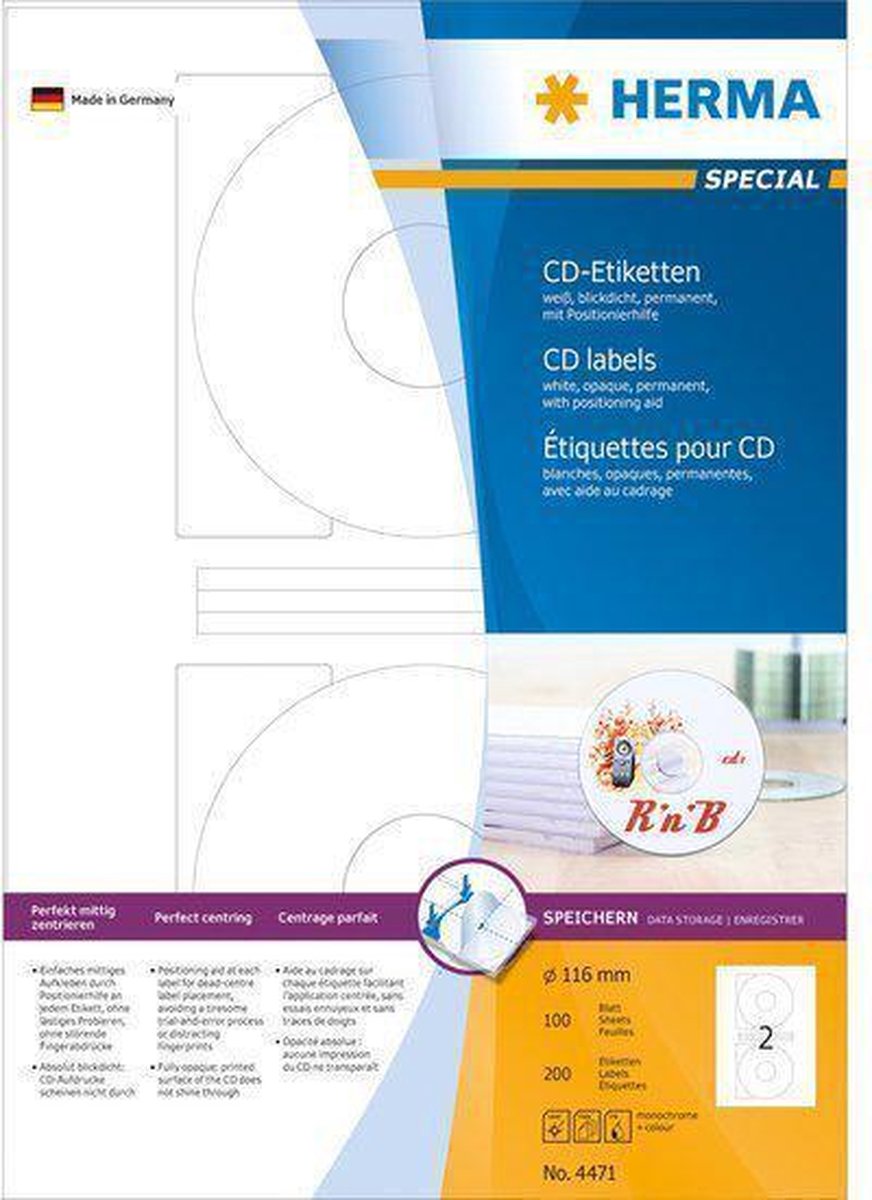 Herma CD-Etiketten weiß ø 116 SuperPrint 200 Stk.