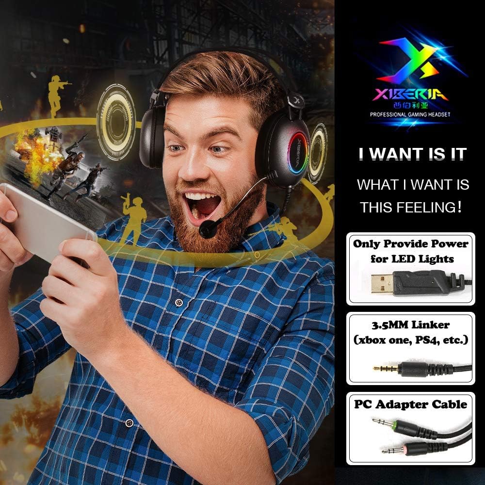 XIBERIA E3 Black Gaming Headset, Over-Ear-Stereo-Gaming-Kopfhörer mit unidirektionalem Mikrofon für PC, Computer, Laptop, PS4, Xbox One, Nintendo