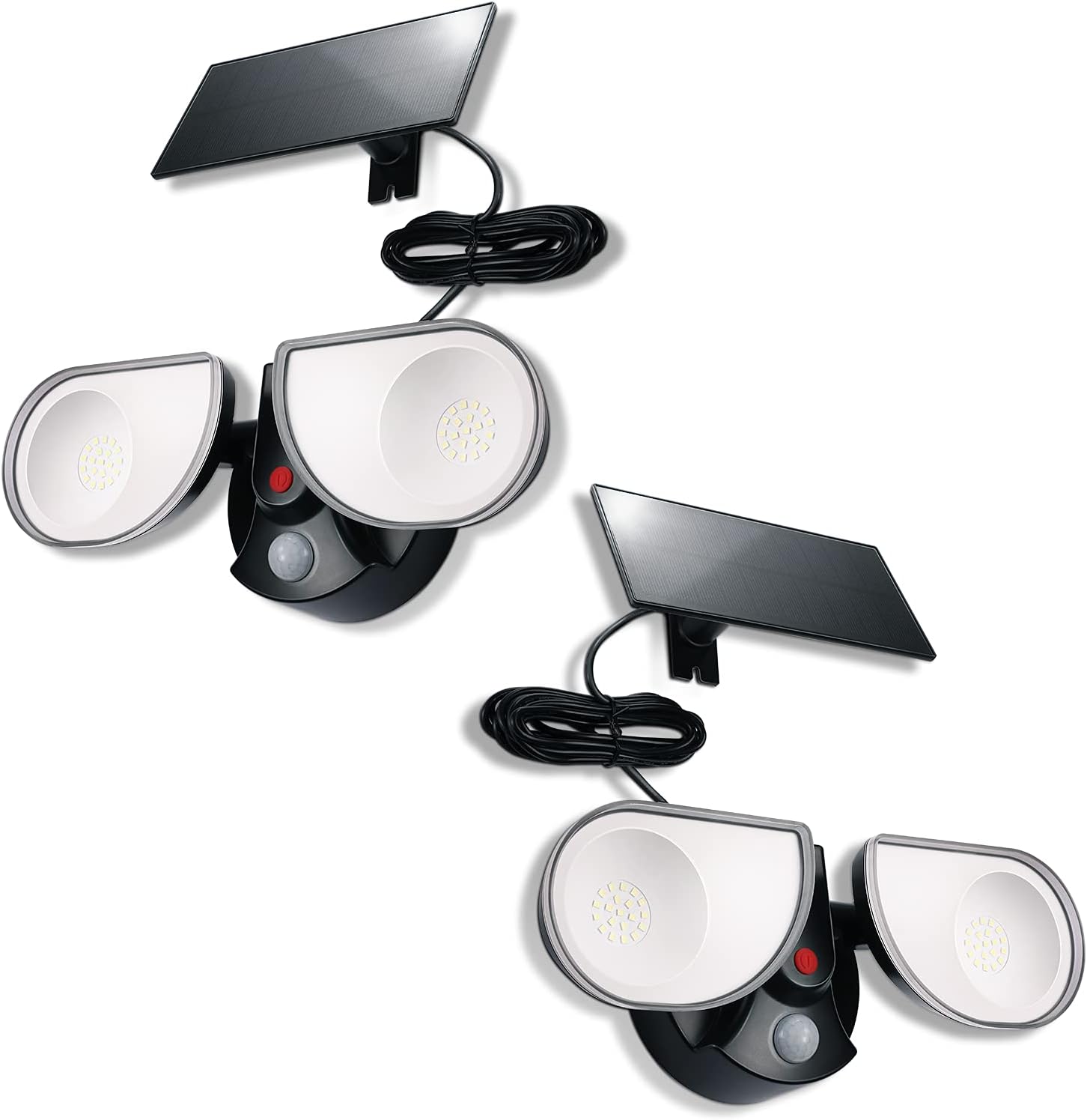 Linkind Guard LED-Flutlicht mit Solar-Bewegungsmelder, abnehmbares Solarpanel mit 9,8 Fuß langem Kabel, 2 verstellbare Köpfe, Sicherheitswandleuchte, 300° Weitwinkel, IP67-Sicherheitsleuchte für Veranda, Hinterhof, 2er-Pack